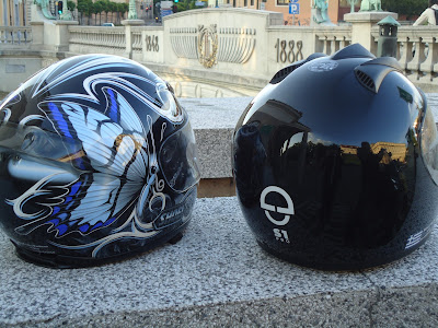 15 May 2012- Day tour to Lake Bled-Vrsic Pass-Kranjska Gora Νωρίς το πρωί ο καιρός είχε καθαρίσει, κι έτσι, αφού απολαύσαμε το πρωινό μας, ετοιμαστήκαμε για το ημερήσιο τουρ που προορισμό είχε την λίμνη Bled και διαδρομή στις Ιουλιανές Άλπεις περνώντας το Vršič Pass και την Kranjska Gora Φτάνοντας στο Bled,ανεβήκαμε να δούμε το Βlejski Grad. που βρίσκεται πάνω στο βράχο, 139μ. πάνω από την λίμνη. H θέα από το κάστρο είναι εκπληκτική. Ο παπαγάλος που ήξερε τα Ελληνικά. Φεύγοντας από το Bled,θέλαμε να πάμε προς το Vršič Pass αλλά κάπου χάσαμε το δρόμο και βρεθήκαμε στην λίμνη Βohinj όπου βρίσκεται στην καρδιά του Εθνικού Πάρκου Triglav. Φοβερή διαδρομή μέσα από καταρράκτες,ρυάκια και καταπράσινα δάση. Μετά από την λίμνη Bohinj,οδηγήσαμε στον 909 για να πάμε προς Tolmin. Οι Ιουλιανές Άλπεις δεν παίζονται και η χώρα έχει τόση "συμπιεσμένη",σε έκταση,ομορφιά,που δε φαντάζεστε. Γενικά οι Σλοβένοι είναι πολύ φιλόξενος λαός και αγαπάνε τους μοτοσυκλετιστές. Μικρή στάση για πορτοκαλαδίτσα στο Most na Soči Αρχίσαμε την ανάβαση για την Kranjska Gora. και το πέρασμα του Vršič Pass. Πηγαίνοντας παράλληλα με τον ποταμό Soča ,όπου τα χρώματα του εναλλάσσονταν από σμαραγδί σε βαθύ πράσινο. Ζήλεψα το τρεχούμενο νερό και κατέβηκα να δροσιστώ λιγάκι,μιας και η μέρα ήταν ζεστή. Φτάνοντας στην κορυφή του Vršič ,στα 1611 μέτρα.Ένα ακόμα αφιλόξενο και έρημο αλπικό τοπίο. Στην παρακάτω φώτο μπορείς να δεις γιατί λένε ότι η τρέλα πάει στα βουνά.Μια κοπέλα ανέβαινε το βουνό με μόνη συντροφιά το σκύλο της. Αρχίσαμε την κατάβαση. Αφού τελειώσαμε το ημερήσιο τουρ,ήρθε η ώρα για μια βολτίτσα στην πανέμορφη Ljoubljana. Στις όμορφες γέφυρες υπάρχει και η Butchers' Bridge, που μπορείς να κλειδώσεις μια ευχή σου ή μια αγάπη σου. Στα σοκάκια της πόλης την προσοχή μας τράβηξε ένα μαγαζί με υπέροχες τσάντες σε διάφορα χρώματα και σχέδια. Καθίσαμε για καφεδάκι στην Preseren Square,την κεντρική πλατεία της Ljoubljana. Τελειώνοντας την βόλτα,περάσαμε από την Dragon Bridge,που και είχαμε παρκάρει νόμιμα σε θέση parking για μοτοσυκλέτες,για να πάρουμε την μηχανή και να πάμε στο ξενοδοχείο.Τα κράνη μας πάντα τα κλειδώναμε γιατί ποτέ δεν ξέρεις τι μπορεί να γίνει. Μερικές game photo. Το ταξίδι μας συνεχίζεται. . |
