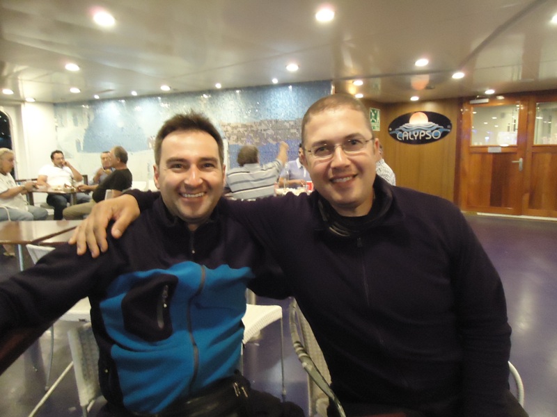 27 May 2012 Ancona -On board Φτάσαμε στο λιμάνι της Ancona και πήγαμε να βρούμε εισιτήρια στα πρακτορεία των ακτοπλοϊκών εταιρειών που βρίσκονται στην οδό Via Luigi Einaudi.Το Superfast ήταν γεμάτο και ευτυχώς βρήκαμε με τις Minoan Lines.Η τιμή της εσωτερικής δίκλινης καμπίνας με μότο ήταν 360 ευρώ,όταν πέρυσι πληρώσαμε, Ηγουμενίτσα -Ancona ,aller retour ,340 ευρώ.Απίστευτο κι όμως Ελληνικό........................................ Φώτο από την αναχώρηση μας.Αποχαιρετούμε το λιμάνι της Ancona και δίνουμε ραντεβού για το 2013...... http://3.bp.blogspot.com/-Tb2PZGuPZ2...0/DSC06712.JPG http://3.bp.blogspot.com/-obvQnerkNF...0/DSC06713.JPG http://2.bp.blogspot.com/-9zgBfHkQ-f...0/DSC06714.JPG http://4.bp.blogspot.com/-0rUkbcgO-7...0/DSC06715.JPG http://4.bp.blogspot.com/-GwEGYhsD1Q...0/DSC06716.JPG http://4.bp.blogspot.com/-aAWCLnPcwc...0/DSC06722.JPG http://4.bp.blogspot.com/-lVDoLuyVeL...0/DSC06723.JPG http://3.bp.blogspot.com/-nXCHtFRP94...0/DSC06724.JPG http://4.bp.blogspot.com/-qjK5HdeWkF...0/DSC06732.JPG http://1.bp.blogspot.com/-O6fGdyU1T7...0/DSC06742.JPG http://3.bp.blogspot.com/-Vhq0p4RQKE...0/DSC06745.JPG http://3.bp.blogspot.com/-YKFxkFfLdu...0/DSC06746.JPG Παρέα, με τον γεμάτο ιστορίες, Γρηγόρη από την Καστοριά που είχε ξεκινήσει από Γερμανία.Είναι πολύ τρελαμένος εντουράς και λάτρης της μοτοσυκλέτας και των ταξιδιών.Συναντηθήκαμε 10 χλμ πριν την Αncona και αφού γνωριστήκαμε ,κάναμε παρέα και συνταξιδεψαμε μαζί. http://3.bp.blogspot.com/-RF0DEU2_Qx...0/DSC06747.JPG |