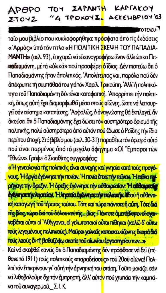 Ακομα ενα αρθρακι απο τον ΑΞΙΟΛΟΓΟΤΑΤΟ Σ.ΚΑΡΓΑΚΟ!..