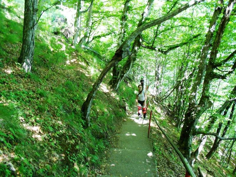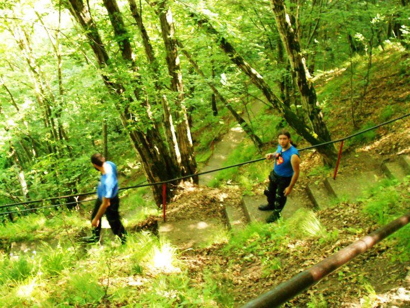 http://i1354.photobucket.com/albums/.../Grades868.jpg Περναμε φραγματα τουνελ ,κατηφοριζουμε μεσα από φαραγγια κ να σου στην κορυφη από ένα λοφο δεσποζει ανεμοδαρμενο ένα ερειπιο καστρου!Το poeinari ηταν οντως ένα από τα καστρα οπου ‘’κονακευε’’ ο δρακουμελ,αφου ηταν αετοφωλια κ δυσκολα προσβασιμο από τον οποιονδηποτε λογω της στρατηγικης του θεσης.Μυθοι κ θρυλοι από τα κοντινα χωριουδακια ακουγονται ακομα κ σημερα, από ότι μας ειπαν ντοπιοι για την φυγαδεψη του δρακουλιαρη από τους χωρικους,,για να μην τον συλλαβουν οι αντιπαλοι του.Σταματαμε στο μοναδικο μαγαζι που υπυρχε στην περιοχη κ παμε να κανουμε κουμαντο για τις πανοπλιες κ τα κρανη.Αφου συμφωνησαμε με το εξυπυρετικο προσωπικο για να αφησουμε τα πραματα μας σε φυλασομενο μερος καναμε την προσπαθεια να σκαρφαλωσουμε τον αποτομο λοφο.1400+ σκαλια –ευτυχως μεσα σε παχια σκια σε μια διαδρομη με πολλη μεγαλη κλιση το poeinari castle http://i1354.photobucket.com/albums/.../Grades875.jpg http://i1354.photobucket.com/albums/.../Grades881.jpg |