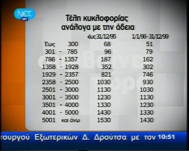 Δείτε στους πίνακες τί θα πληρώσετε για τα τέλη κυκλοφορίας! !!!!!