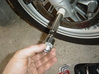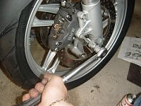 ...οχι τοσο για να γλυτωσω τα 30 ευρωπουλα που ζηταει ο λαστιχας της γειτονιας μου αλλα περισοτερο για μια αφορμη να φροντισω λιγο παραπανω την "εκλεκτη της καρδιας μου"(..στα διτροχα ) ....καταπιάστηκα εχθες στο πρωινο μου, να βγαλω τα λαστιχα με τις ζαντες με προσοχη να τις παω να περασω φρεσκα λαστιχακια και με την ευκαιρία να κανω ενα γενικο lifting-cleaning στη γυρω περιοχη! ...στα λαστιχακια, μετα απο ερευνα που εκανα, κατέληξα τελικα στα Continental Trail Attack ...στην σχετικα οικονομικη τιμη των 215 με τα περαστικα (...αλλαγη βαλβιδες, ζυγισμα, βαρακια κτλ.)! ...απλωσα λοιπον τα "κουβαδακια μου" ...πηρα και το καφεδακι στο χερι(...εσπρεσακι αυτη τη φορα!) και αρχισα.... .....βασικα επρεπε να στερεώσω τη μηχανη καπου ψηλα και σταθερα...γιατι εξ αρχης ξερω οτι αν βγαλεις τα λαστιχα και εχεις το GS στον ορθοστατη ...το σιγουρο ειναι οτι θα πέσει προς τα μπροστα με ολα τα καταστρεπτικα αποτελεσματα της πτήσης αυτης !! ...μια σιγουρη λυση και προταση μου αν δεν εχεις την ειδικη ραμπα να σηκώσεις τη μηχανη ειναι η ακολουθη! ...με ενα γρυλο αυτοκινητου και ενω εχεις τη μοτο στον ορθοστατη σηκώνεις ελαφρα λιγο παραπανω και τοποθετεις απο κατω ενα χοντρο τσιμεντολιθο ...ενα μεγαλυτερο ξυλο και πανω ενα κομματι λαστιχο για να ακουμπησει ομαλα οταν βγαλεις το γρύλο!...μετα το δενεις με ενα ζωναρι περνώντας μεσα απ το προστατευτικο το κινητήρα και δενοντας το στο κατω μερος του ορθοστατη !!! http://2.bp.blogspot.com/-2eAgZ_Hj0j...200x200Q85.jpg...http://3.bp.blogspot.com/-luHLveTqwA...200x200Q85.jpg...http://1.bp.blogspot.com/-TAKFNIU6xH...200x200Q85.jpg ......μιλαμε οτι η μηχανη εχει αραξει σαν τραπεζι και μπορεις να πατας και να τραβας χωρις να κουνιέται ουτε χιλιοστο !!! επι της ουσιας τωρα!.... στερεώνεις και το τιμονι με ενα γερο "χταποδι" στα ισια του ....μαζευεις τα μανικια σου και περνας γρηγορα στο πισω τροχο που ειναι και εντελως παιχνιδακι να τον αφαιρέσεις! ....ξεβιδωσεις 3 τορξ βιδες βγαζωντας το πισω φτερακι ..και τις 5 βιδες που κραταν τον πισω τροχο .... http://2.bp.blogspot.com/-VfknbtKnWD...200x200Q85.jpg...http://1.bp.blogspot.com/-SDI-F5KNCs...200x200Q85.jpg ....και η μιση δουλια εχει τελειώσει!!! ...περναμε λοιπον στο μπροστινο μερος που ειναι και η μεγαλυτερη απολαυση αλλα θελει και παραπανω προσοχη!... ...δεν υπαρχει κατι που μπορεις να κανεις λαθος αλλα 2 (S.O.S.)πραγματακια πρεπει να χεις στο μυαλο σου ..για να μην μπεις σε μπελαδες!!!... ...το πρωτο ειναι οτι καθοτι θα πρεπει να βγαλεις και τις δυο δαγκανες για να βγαλεις την ζαντα ....θα πρεπει να προσεχεις οταν βγαλεις τις δαγκανες απ το δισκοφρενο να μην πατησεις για οποιοδήποτε λογο την μανετα του μπροστινου φρενου γιατι θα δεις τα πιστονια της δαγκανας να πεφτουν ...αδειαζοντας φυσικα τα υγρα των φρενων στο πατωμα και μετα θα αρχισει ο πονοκεφαλος!...μια πρόχειρη αλλα πρακτικη λυση ειναι να σφηνώσεις κατι αναμεσα στη μανετα του μπροστινου που και να θελεις να μην μπορεις να το πατήσεις !!!...καπως ετσι δηλαδη!!... ....και δευτερο ....μεγαλη προσοχη οταν βγαζεις τον πίρο απ το μπροστινο και τραβηξεις την ζαντα μην χτυπησεις απο λαθος τον ευαίσθητο πλαστικο αισθητηρα του ABS !!! ..που βρισκεται σε αποσταση αναπνοης απ το στεφάνι ...μια γερη επαφη με το δισκοφρενο αρκει για να σπασει....εχω ακουσει οτι κοστιζει πανω απο 100 ευρωπουλα να καταφερεις να το σπασεις!!! http://www.mybike.gr/style_emoticons/default/fool.gif ....και μετα απ τα S.O.S. περναμε στα διαδικαστικά !...ξεκουμπωνεις τους 2 μεντεσεδες που στερεώνουν το καλωδιο του αισθητηρα στο σωλήνα απ τα υγρα των φρενων και ξεκινας ξεβιδωνοντας τις 2 βιδες που κρα