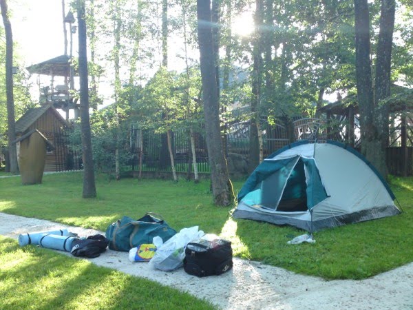 Ο Γιάννης και ο Δημήτρης είχαν ήδη ξυπνήσει νωρίτερα από εμένα και είχαν κάνει τη βόλτα τους στο πάρκο. Ήρθαν από τη σκηνή όταν είχα αρχίσει να ξυπνάω και εγώ.