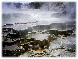 Τα θαύματα της φύσης που είναι μαζεμένα εδώ, δεν τα βρίσκεις εύκολα αλλού – από τις ζεστές “πηγές του Μαμούθ” που φαίνονται στην φωτογραφία μέχρι την πηγή Grand Prismatic και την πηγή Morning Glory, τα geysers και όλα τα άλλα θαυμάσια και παράξενα προσφέρουν αξέχαστες εμπειρίες στον επισκέπτη του πάρκου.