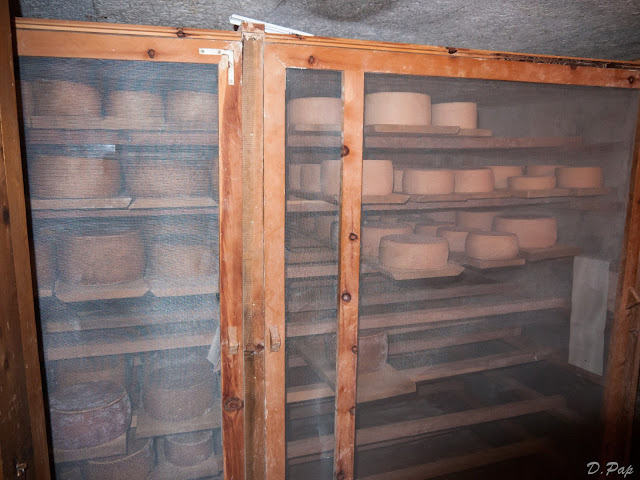 Για του λόγου του αληθές κατά τα μεσάνυχτα πήγαμε παρέα να στραγγίξουμε τα τυριά και να τα βάλει να στεγνώσουν (να ωριμάσουν δηλαδή), μια διαδικασία που κρατάει από 1 έως 3 χρόνια, για αυτό και είναι τόσο ακριβό το τυρί του μας έλεγε, γιατί ωριμάζει όσο πρέπει, ή όσο αρέσει στον κάθε πελάτη...