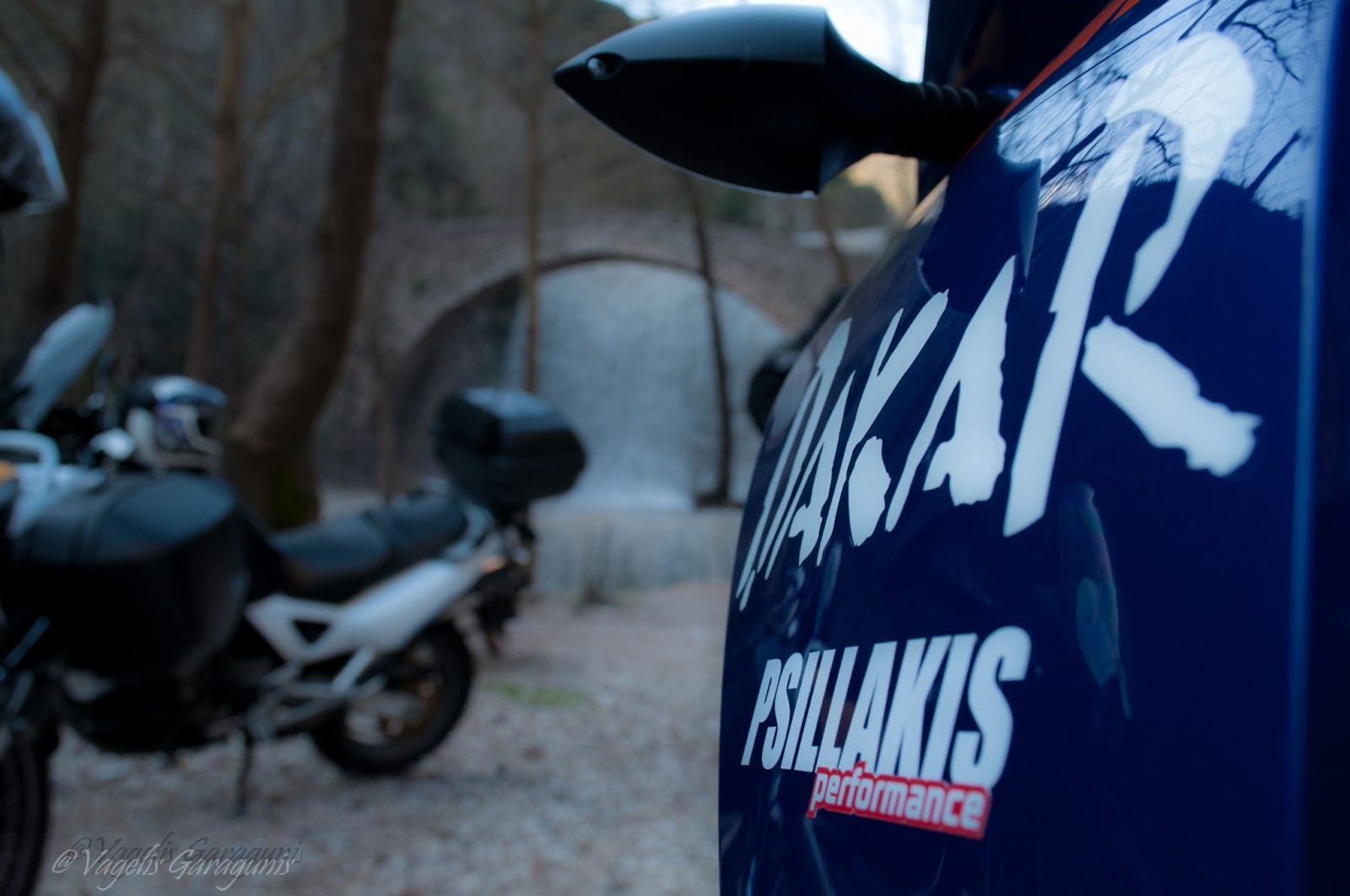 Το Κυριακάτικο ραντεβού στο γνωστό πλέον σημείο. Η ώρα πλησίαζε, όλα έτοιμα, βγαίνω από το σπίτι μου, κλειδί στην μίζα...ωπ η γριούλα μου αρνείται να ανταποκριθεί...πριν 2 ημέρες είχε τελειώσει η νοσηλεία της. Όλα οκ μου λέει ο μάστορης. Αμ, δε...το γνωστό πρόβλημα με την απώλεια ρεύματος παρέμενε... Τηλέφωνο στον Αποστόλη. Σε 10 λεπτά το Caponord βρισκόταν εκεί και ο Αποστόλης ανέλαβε υπηρεσία. Σπρώξιμο μια..τίποτα, δεύτερη τίποτα...φίδια παντού..άλλη μια του λέω...τρίτη και ο κινητήρας από το μωρό μου άρχισε να ξεροβήχει και στη συνέχεια το γνωστό γουργουρητό. Πρόβλημα με το καλημέρα σας, δε βαριέσαι, πάμε και βλέπουμε... 8 και κάτι και η παρέα συγκεντρωμένη και έτοιμη για αναχώρηση. Χαμόγελα και πειράγματα έδιναν το στίγμα για αυτά που θα ακολουθούσαν. (φωτογραφία Φώτη) Το πρώτο κομμάτι της διαδρομής και η πρώτη στάση θα γινόταν στους καταρράκτες της Παλαιοκαριάς, λίγα χιλιόμετρα (32) από τα Τρίκαλα. Λίγες φωτογραφίες από την περιοχή και κάποιες πληροφορίες. Είναι από τα αγαπημένα μου μέρη. Πολύ κοντά μου και πανέμορφα. Ιδανικό μέρος και για να στήσετε τη σκηνή σας (αν και την άνοιξη ο θόρυβος από τα νερά του καταρράκτη είναι εκκοφαντικός). Πολύ κοντά υπάρχουν αρκετά χωριά με μεγαλύτερο αυτό της Πύλης όπου και μπορείτε να προμηθευτείτε ότι χρειάζεστε. Αν συνεχίσετε τον δρόμο προς Παλαιοκαριά συναντάτε τα σκαλάκια που σας κατεβάζουν πάνω στην τοξοτή γέφυρα. Μια επίσκεψη στο καφενεδάκι του μπαρμπα Στέφανου θεωρείται επιβεβλημένη (βρίσκεται στην Άνω Παλαιοκαριά) Ο Γιάννης κουβάλαγε κάτι κουτιά στο top-case. Δεμένα επιμελώς. Κάτι μας ετοιμάζει αυτός.... Ο Βασίλης και ένα από τα ομορφότερα KTM 990 που έχω δει. Καλός φίλος, ήρθε από την Αθήνα για την βόλτα. Ευχαριστώ για την τιμή Βασίλη. Όλα για την τέχνη :P ![]() (Φωτογραφία John The Son) |