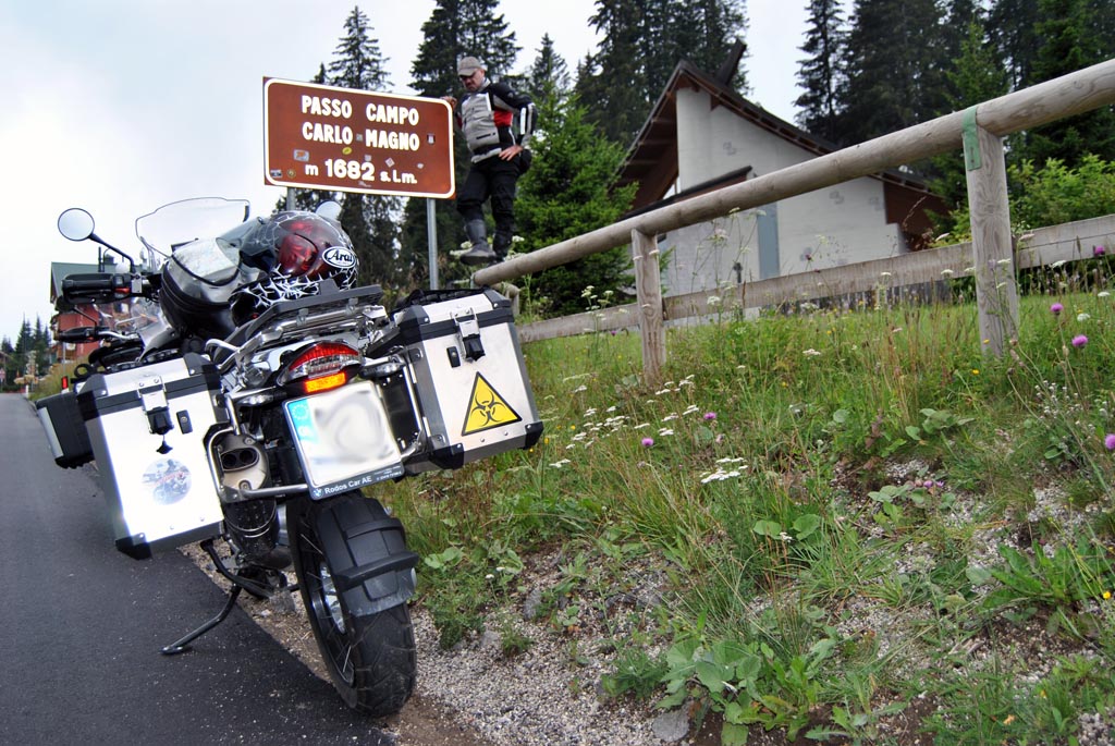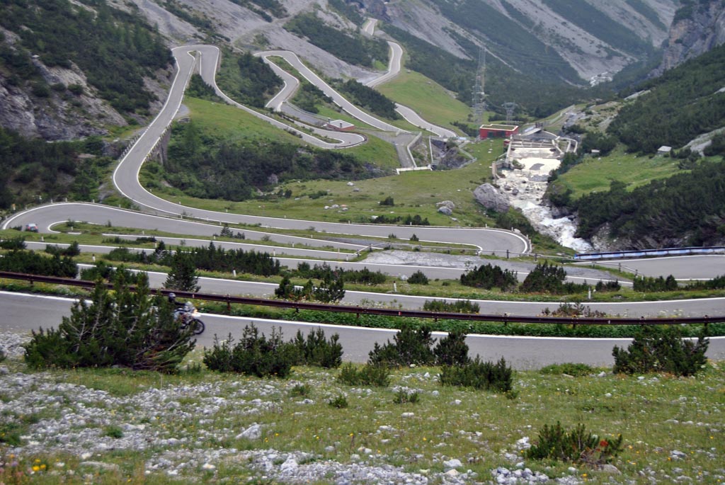 Είναι γεγονός πως η οικονομική κρίση έχει επηρεάσει αρκετά τις αποδράσεις εκτός συνόρων , η τσέπη των περισσοτέρων αναβατών δεν αντέχει συγκινήσεις ή το σκέφτεται μιας και το μέλλον είναι δύσκολο. Πάρα ταύτα μαζεύοντας ένα μικρό κομπόδεμα από τις αρχές του χρόνου για μια ολιγοήμερη εξόρμηση στο εξωτερικό αποφάσισα να επισκευθώ την γειτονική Ιταλία. Από το περσινό οδοιπορικό στην Καππαδοκία είχα γνωρίσει ένα ζευγάρι Ιταλών με τους οποίους διατήρησα φιλική σχέση όλο αυτό το χρονικό διάστημα ,ρωτώντας λοιπόν τον Λορέντζο « να έρθω;» η απάντηση ήταν άμεση και θετική! Δύο εβδομάδες μετά βρισκόμουν στην Εθνική Αθηνών Κορίνθου Πατρών με σκοπό να επιβιβαστώ στο πλοίο των Μινωικών γραμμών με λιμάνι άφιξης την Ανκόνα. Το πλάνο της εκδρομής οργανώθηκε εξ ολόκληρου από τον φίλο Ιταλό και σκοπός του ήταν να διασχίσουμε 7 passo στις Ανατολικές Ιταλικές Άλπεις με αποκορύφωμα το γνωστό σε όλους μας Passo Dello Stelvio (2758m). H Διαδρομή μέχρι την Πάτρα ήταν «κολασμένη» ο καυτός ήλιος οι εργασίες κατασκευής του νέου οδικού δικτύου , τα φορτηγά , καθιστούσαν την οδήγηση δύσκολη και κουραστική, το πλοίο ήταν η όασή μου αλλά συνάμα και εφιάλτης (20 ώρες δρομολόγιο). Από τους 39 βαθμούς της Ελλάδας έπεσα στους...35 της Ιταλίας, Παρασκευή μεσημέρι ξεκίνησα από την Ανκόνα με προορισμό την Φεράρα , μια απόσταση 237 χιλιομέτρων εκ των οποίων τα πρώτα 100 μέχρι το Ρίμινι ήταν υπό κατασκευή...αλλά δεν το καταλαβαίνεις, σωστή σήμανση ,βοηθητικές λωρίδες , αστυνόμευση , κανένα πρόβλημα , μετά το Ρίμινι συνεχίζει ο δρόμος μέχρι την Μπολόνια και από εκεί την Φεράρα με την κλασσική και καταπληκτική autostrada , 3 λωρίδες, ατελείωτες ευθείες και «αγριεμένη» άσφαλτο. Όμως η άφιξη μου στην Φεράρα ήταν στις 1830 το απόγευμα μετά από 3.5 ώρες λόγω σοβαρού ατυχήματος και ατελείωτου μποτιλιαρίσματος έξω από την Μπολόνια, μια νταλίκα είχε διπλώσει με αποτέλεσμα να χτυπήσει 2 αυτοκίνητα. Συναντήθηκα με τον Ιταλό «μαφιόζο» φίλο στην είσοδο της πόλης και αφού τακτοποιηθήκαμε ,είπαμε και δυό κουβεντούλες , βγήκαμε στους δρόμους για την απαραίτητη περιήγηση στην πόλη και φυσικά το δείπνο με την παραδοσιακή Ιταλική πίτσα. το αυτοκόλληιτο του φόρουμ ελπίζω να μην το ξεκολλήσουν.... Η Φεράρα με μάγεψε ,για την ιστορία λοιπόν βρίσκεται 50 χιλιόμετρα βορειοανατολικά της Μπολόνια και χαρακτηριστεί από την Unesco Μνημείο της παγκόσμιας πολιτιστικής κληρονομιάς. Στην πόλη ο επισκέπτης μπορεί να θαυμάσει παλάτια που χρονολογούνται από τον 14 αιώνα, το δημαρχείο της πόλης (ένα πανέμορφο παλάτι που αναπαλαιώθηκε τον 18 αιώνα) τον καθεδρικό ναό του Αγίου Γεωργίου ενώ εξακολουθεί να περιβάλλεται από περισσότερα από 9 χιλιόμετρα αρχαίων τειχών τα οποία μάλιστα είναι από τα πιο καλοδιατηρημένα τείχη της Αναγέννησης στην Ιταλία. Η παρουσία αυτοκινήτων στο κέντρο της πόλης είναι σχεδόν ανύπαρκτη , οι κάτοικοι κυκλοφορούν με ποδήλατα είτε για να πάνε στην δουλειά τους είτε για να ψώνια είτε για να διασκεδάσουν. Ιδανικά στοιχεία που δυστυχώς δεν βλέπουμε στην Αθήνα μας ,μιας και οι υπεύθυνοι μάλλον δεν γνωρίζουν το ποδήλατο, δεν γνωρίζουν πως είναι να ζεις χωρίς κίνηση και νέφος.... Το επόμενο πρωινό και μετά από μια γερή δόση εσπρέσο ( 1,00€) ξεκινήσαμε την «Βόλτα» μας στις Άλπεις. Ακολουθήσαμε την autostrada προς Πάντοβα, Βενετία Μπολζάνο και από εκεί πήραμε τον επαρχιακό οδικό άξονα με προορισμό και πρώτη στάση την πανέμορφη και γρα