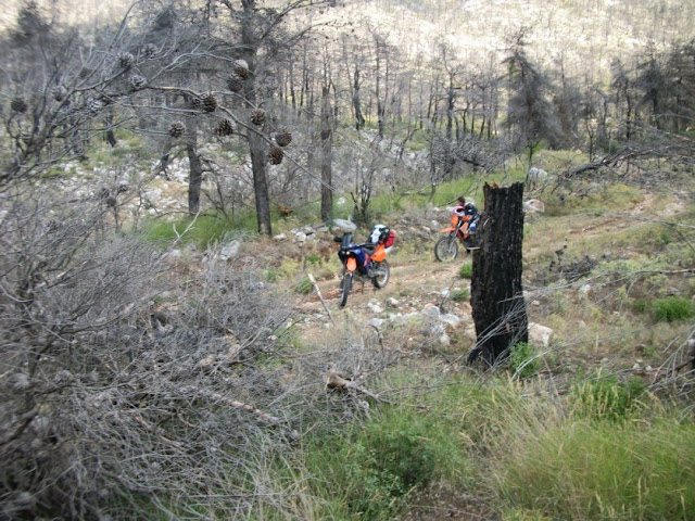 Καλή ανάγνωση .... Αφιερωμένο στα 5 παιδιά που κάηκαν άδικα. Μίστρος- Χιλιαδού Μίστρος- Χιλιαδού 04.07.2010 Ξεκινήσαμε λοιπόν να πάμε για εντουράδα προς Χιλιαδού μεριά …Ένα 2 ημεράκι, ήταν ότι έπρεπε για να ξεφύγουμε ο καθένας από τις δικές του σκοτούρες! Το πρώτο κομμάτι από Αθήνα ήταν άσφαλτος μέχρι την Χαλκίδα. Εκεί βάλαμε βενζίνη και μπήκαμε χώμα με προορισμό τα Πέι, περνάμε απέναντι το ποταμό Λίλαντο, Λεχριές, Ζωοδόχο Πηγή, Ταμάρι, Προφήτη Ηλία, κάνουμε έναν κύκλο στον Όλυμπο, κ πέφτουμε στον Μίστρο από την Τούρλα. Μπρος μας λοιπόν ένα πεσμένο δέντρο, ήταν σαν να σου έλεγε ‘’ψιτ κάντε πίσω, από εδώ δεν είστε καλοδεχούμενοι’’, αλλά βρήκε τα άτομα .. ![]() Περάσαμε το πεσμένο δέντρο, με την σκέψη πως στο Μίστρο θα φτάσουμε σε 10 χλμ, να φανταστείτε πως ούτε σταγόνα νερό δεν είχαμε μαζί. Παρά είχαμε αισιοδοξία μου φαίνετε. ![]() ![]() Βλέπουμε πως ο χωματόδρομος έχει φύγει τελείως και την θέση του έχουν πάρει πέτρες, δέντρα και χαλάσματα. ![]() ![]() ![]() Λόγο της φωτιάς και αμέσως μετά της ασταμάτητης βροχής τα διέλυσε όλα, όταν λέμε όλα, ‘’ΟΛΑ’’. Θα κάνω μια μεγάλη παρένθεση για όσους δεν γνωρίζουν το συμβάν του 2007, που πήρε φωτιά και θα ήθελα να το διαβάσετε ‘’όλοι’’.!!! Διαβάστε τις τελευταίες στιγμές των παλικαριών. Διαβάστε για τη Ζωή τους. Δείτε ποιοί ήταν και θα καταλάβετε πολλά. Νιώστε αυτές τις γραμμές και ποτέ πια δεν θα σας μολύνουν το μυαλό οι διάφοροι εξουσιαστές – σαλτιμπάγκοι. Και συ ρε Γελοίο κράτος κάνε κάτι για το Βασίλη! Δεν θέλει ανδριάντες σαν τον Κεμάλ, όπως και οι υπόλοιποι. Δεν είστε άξιοι να αποδώσετε τιμές σ’ αυτούς τους ανθρώπους. Αυτοί κάηκαν μια φορά και έμειναν Αθάνατοι. Εσείς θα είστε τα αιώνια “καμένα χαρτιά”. Απλά ανοίξτε τα κιτάπια σας που χρηματοδοτούν τις ΜΚΟ και κάντε κάτι για το κάρμα σας. Ήταν μια φορά κι έναν καιρό ένα όμορφο χωριό… Κυριακή 26 Αυγούστου 2007. Μίστρος Ευβοίας. Οι πυρκαγιές έχουν κυκλώσει το νησί, έχουν κυκλώσει την Ελλάδα. Πυροσβέστες κι εθελοντές δίνουν άνιση μάχη. Ανάμεσά τους και πέντε παλικάρια, εθελοντές από το Μίστρο και το Θεολόγο. Πέντε παλικάρια σκοτώθηκαν. Εκείνες τις μέρες, στην Εύβοια, πάνω από 70.000 στρέμματα δάσους και δασικών εκτάσεων έγιναν στάχτη. Περισσότερα από 30 σπίτια κάηκαν ολοσχερώς και 20 υπέστησαν ζημιές. Η παραγωγική δραστηριότητα του νομού υπέστη ένα τεράστιο πλήγμα: 250.000 ελαιόδεντρα, 10.000 άλλα οπωροφόρα, 50 στρέμματα κρασάμπελα, 2.000 γιδοπρόβατα, 1.500 κυψέλες μελισσών, δεκάδες βοοειδή, χοίροι και ζώα εργασίας, 100 σταβλαποθήκες συνολικού εμβαδού 5.000 τετραγωνικών μέτρων. Κάηκαν 150.000 στρέμματα στα οποία βοσκούσαν 40.000 γιδοπρόβατα και βοοειδή. Όλα έγιναν στάχτη… Τις μνήμες εκείνων των ημερών φέρνει σήμερα ένα κείμενο που δημοσιεύει ο «Ρ» από κάποιον που έζησε από κοντά τον εφιάλτη. * * * Ήταν μια φορά κι έναν καιρό ένα όμορφο χωριό στην Εύβοια, στην κεντρική Εύβοια, περιτριγυρισμένο από βουνά. Βουνά που εμπόδιζαν τον «πολιτισμό» να εισβάλει στο χωριό. Τα βουνά εμποδίζουν τους εισβολείς, γίνονται και φυσικά φρούρια, φυσικά σύνορα και απομονώνουν περιοχές. Αυτό το χωριό, απομονωμένο στην ομορφιά του και στον κόσμο του, είχε μόνιμους κατοίκους …παιδιά που σπίτι τους θεωρούσαν τα βουνά που τους περιτριγύριζαν. Παιδιά που θεωρούσαν υποχρέωση να διατηρήσουν τα δάση. Βέβαια, από αυτά ζούσαν, ούτε κουβέντα. Γιατί: Είτε ήταν κτηνοτρόφοι, είτε ήταν βοσκοί ή και τα δυο μαζί. Αύγουστος του 2007. Μίστρος Εύβο