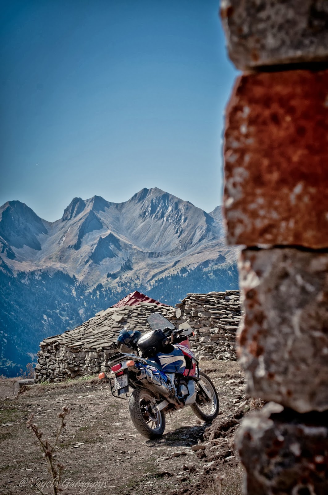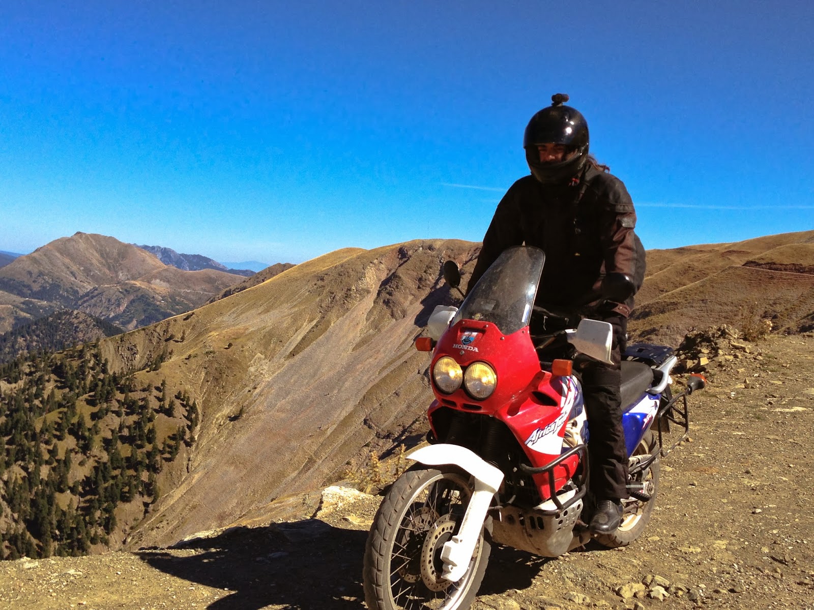 |  Μέχρι ν' αγγίξουμε ουρανό... https://www.youtube.com/watch?featur...&v=SWI1-KKgGz0  (Το συγκεκριμένο τραγούδι είναι Ηπειρώτικο Μοιρολόϊ από τον Πετρολούκα Χαλκιά.   Είναι τόσο δυνατά τα συναισθήματα που μου προκαλεί όταν το ακούω, που θα  μου επιτρέψετε να το χρησιμοποιήσω και σε αυτό το οδοιπορικό παρόλο που  οι δρόμοι που πατήσαμε ήταν στα βουνά των Αγράφων.)  Το πρώτο τσιγάρο της βραδιάς άναψε και το βλέμμα μου καρφωμένο  στην οθόνη του υπολογιστή. Λευκό φόντο και ένας μαύρος κέρσορας να με  προσκαλεί να ξεκινήσω να βάζω σε μια σειρά τις σκέψεις, τις εικόνες και  τα συναισθήματα μου. Δεν είναι εύκολο και το γνωρίζω πολύ καλά...  Η αρχή στην συγγραφή των οδοιπορικών μου πάντα είναι το πιο δύσκολο κομμάτι.  Πως μπορώ να δώσω στον άνθρωπο, που έχει απέναντί του το κείμενο, να  καταλάβει σε κάποιες αράδες όλα αυτά που για κάποιες ώρες έχω νιώσει?  Πως μπορώ μέσα από ψυχρές λέξεις να μεταφέρω τον καταιγισμό των  συναισθημάτων που η ψυχή μου έχει νιώσει, μέσα σε λίγες μόνο ώρες μιας  μικρής βόλτας?   Δεν ξέρω τελικά τι καταφέρνω...η αλήθεια είναι πως προσπαθώ μέσα από  συναισθήματα να παρουσιάσω εικόνες, χρώματα και ήχους μιας άλλης  Ελλάδας. Μιας Ελλάδας ξεχασμένης από τους πολλούς... εγκαταλελειμμένης,  μιας Ελλάδας όμως που στους περισσότερους από εμάς ξυπνά αναμνήσεις τόσο  δυνατές όσο και οι αναμνήσεις των παιδικών μας χρόνων...  Οι πρώτες γουλιές του κρασιού έχουν κυλήσει στον λαιμό μου και έχουν  αρχίσει να γλυκαίνουν τις αισθήσεις. Στα ακουστικά μου το "Ηπειρώτικο  Μοιρολόϊ", στην οθόνη οι φωτογραφίες του οδοιπορικού...  Η ψυχή μου ακόμη τριγυρνά στα σκληροτράχηλα βουνά, στους κακοτράχαλους  δρόμους, στα έρημα χωριά,στους αγνούς ανθρώπους...εκεί ψηλά...στα βουνά  των Αγράφων. Το μυαλό και η καρδιά ακολουθούν πρόθυμα αλλά η λογική έχει αντίθετη άποψη... "προσγειώσου, η βόλτα τελείωσε, υπάρχουν υποχρεώσεις, λογαριασμοί, εφορίες, τράπεζες, δουλειές..."  Για μια φορά ακόμα όμως θα παραμερίσω τις κραυγές της λογικής και  σβήνοντας την μίζα της μηχανής του μυαλού μου, θα αφήσω τον εαυτό μου να  ξανα-ταξιδέψει ήρεμα στα μονοπάτια των αναμνήσεων...  Το οδοιπορικό πραγματοποιήθηκε την Κυριακή 15 Σεπτεμβρίου.  Η παρέα αποτελούνταν από τους Σωτήρη (Varadero - Bridgestone), Θάνο (Gs  1150 - Karoo), Φίλιππο (GS 1200 - Anekee 3), και από εμένα (Africa -  Anekee 2).  Συνολικά διανύσαμε 215χλμ τα 115 από αυτά σε χωμάτινους δρόμους των Αγράφων (Τύμπανος, Πετροχώρι,Πετρίλο, Νιάλα).  Η εκκίνηση έγινε στις 08:00 το πρωϊ της Κυριακής και η επιστροφή στις 21:00 της ίδιας ημέρας.   Στα Τρίκαλα συναντήθηκα με τον Σωτήρη και το Θάνο (ήρθε από Λάρισα), ενώ  κάπου στον Τύμπανο θα συναντούσαμε τον Φίλιππο που ερχόταν από την  Άρτα.   Το πρώτο κομμάτι της διαδρομής καθώς και η πρώτη στάση για να  εφοδιαστούμε τον πρωινό μας καφέ έγινε στην κομώπολη του Μουζακίου.  "Αφού φοράω Karoo"  μια ατάκα του Θάνου που ακούσαμε πάνω από 200 φορές στο οδοιπορικό μας    Άντε, καλοφόρετα με πολλά-πολλά χωμάτινα χιλιόμετρα  Καλή παρέα, διάθεση, καφές, τσιγάρα...α και Karoo Επιβεβλημμένη η στάση στα πρώτα "πέταλα" του δρόμου λίγο πριν το πέρασμα του Τύμπανου (1700μ), για "λίγες" φωτογραφίες.  και τα πρώτα ανηφορικά κομμάτια εμφανίστηκαν μπροστά μας. Σηκώνοντας το βλέμμα λίγο πάνω από τον δρόμο μπορούσα να δω όλη την μεγαλοπρέπεια των κορυφογραμμών των Αγράφων. Βουνά εντυπωσιακά των οποίων η ατμόσφαιρα έχει χαρακτηριστεί ως μια από τις πιο καθαρές του πλανήτη!!! Στα 2.184 μέτρα η ψηλότερη κορυφή (Κ