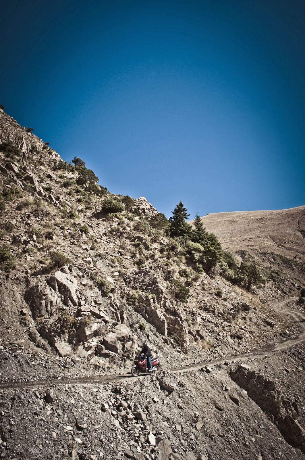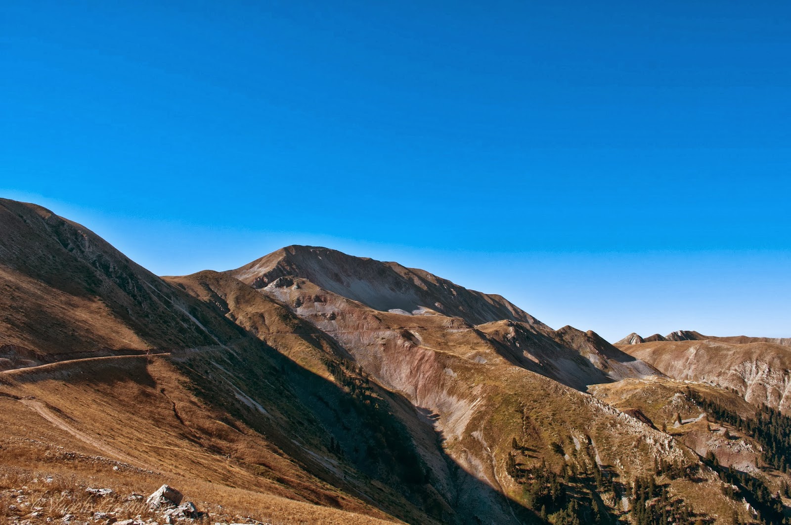|  Απάντηση: Μέχρι ν' αγγίξουμε ουρανό... "Αρχη ήμισυ του παντός"...και η αρχή είχε γίνει με εντυπωσιακό τρόπο. Τα επόμενα χιλιόμετρα είχαν κάτι μαγικό. Η επιλογή του Θάνου να οδηγήσουμε σε αυτή την διαδρομή ήταν ό,τι καλύτερο. Ο δρόμος όσο προχωρούσαμε γινόταν και πιο δύσκολος. Οδηγούσαμε κατά μήκος του βουνού λίγα μέτρα κάτω από την κορυφή του. Μπλε, καφέ, πράσινο, κίτρινο, κόκκινο όλα τα χρώματα μπροστά, πάνω, δεξιά, αριστερά...τα μάτια παλεύουν να καταγράψουν, το μυαλό πιέζει να αποθηκεύσει... Κάμερες, φωτογραφικές όλα σε λειτουργία....   (σημείο φωτογραφίσης)  |