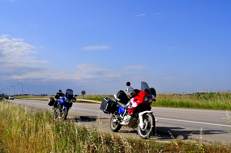 ![]() Ατελείωτα χιλιόμετρα ευθειών μέχρι να συναντήσω την πινακίδα "Εύζωνοι". Λίγο με απασχολούσε εκείνη την στιγμή ο δρόμος μέχρι τα σύνορα ξέροντας πως αμέσως μετά θα πατούσαμε σε δρόμους που δεν είχα ξαναπάει και από μόνο του αυτό αποτελούσε μια καλή τονωτική ένεση, που σε συνδιασμό με την πρωινή αύρα και την μειωμένη κίνηση στην Ε.Ο Αθηνών-Θεσσ/κης έφερνε στο πρόσωπό μου εκείνο το γνωστό χαμόγελο που νιώθουμε όλοι μας όταν ξεκινάμε κάποιο ταξίδι. |