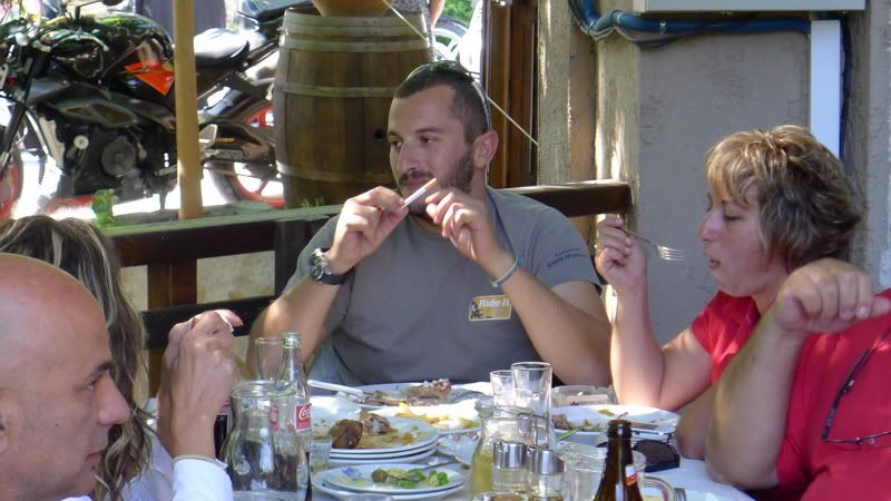 ![]() ![]() ![]() ![]() Στο δρόμο είχαμε και μια μικρή περιπέτεια. Κάναμε κάνα δυο χιλιόμετρα χωματόδρομου. Η εκδρομή στον σχεδιασμό της δεν περιλάμβανε ούτε μέτρο μη ασφαλτοστρωμένου οδοστρώματος αλλά λίγο πριν την κανονική διασταύρωση κάποιοι είχαν τοποθετήσει 2 πινακίδες για το χωριό πριν ασφαλτοστρωθεί ο δρόμος. Δεν ήταν κάτι το απαγορευτικό για τα streetάδικα μηχανάκια της παρέας αλλά θα μπορούσαμε να το είχαμε αποφύγει. Πάντως γελαστό τον βλέπω τον Μιχάλη που έβαλε πρώτη φορά το CB1300 σε χώμα.. Ίσως τον πείσω να πάρει και κανένα on-off ![]() ![]() ![]() Κάπου εκεί πάνω βρίσκεται ο Μικρός Ομαλός που είχαμε πάει πριν λίγους μήνες. ![]() ![]() Το τραπέζι μας περίμενε και στρογγυλοκαθόμαστε.. Η πείνα έχει κάνει αισθητή την παρουσία της. ![]() ![]() ![]() ![]() ![]() ![]() ![]() ![]() ![]() ![]() ![]() Αν και υπήρχαν πολλές από δαύτες δεν μας ενόχλησε καμμία κατά τη διάρκεια του φαγητού μας! ![]() |