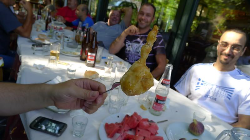 Μπυρίτσες... ![]() Σαλατούλες και τζατζικάκια... ![]() Ντάκοι.. ![]() Απάκια (καπνιστό χοιρινό).. ![]() Μπριζολίτσες.. ![]() Κοτοπουλάκια.. ![]() Απίστευτο κατσικάκι με Συμιανά φασολάκια.. ![]() Και λίγο "αντικριστό" για τη μυρωδιά... ![]() ![]() Έγινε αυτό που γίνεται συνήθως... μην μπαίνω σε ανατριχιαστικές λεπτομέρειες! ![]() ![]() ![]() ![]() Άλλοι κάνουν συλλογή γραμματόσημα κι άλλοι άδεια πιάτα μπροστά τους.. Και μιλάω για τον κύριο με το μπλουζάκι της σχολής του Τάκη Μανιάτη και τον άλλο κύριο με τα κεμπάμπ που δεν φαίνεται και κάθεται δίπλα του. ![]() ![]() ![]() Εδώ μάλλον για ψάρεμα μιλούσανε. Δεν τους άκουγα, είχα προνοήσει να κάτσω μακρυά από τον Τάκη! ![]() ![]() Να κι άλλος ψαράς! ![]() Κι άλλος! Τι γίνεται σ'αυτή την παρέα; ![]() ![]() ![]() ![]() - Μάριε, σου ξέφυγε ένα κομματάκι αντικριστό εδώ... ![]() ![]() |