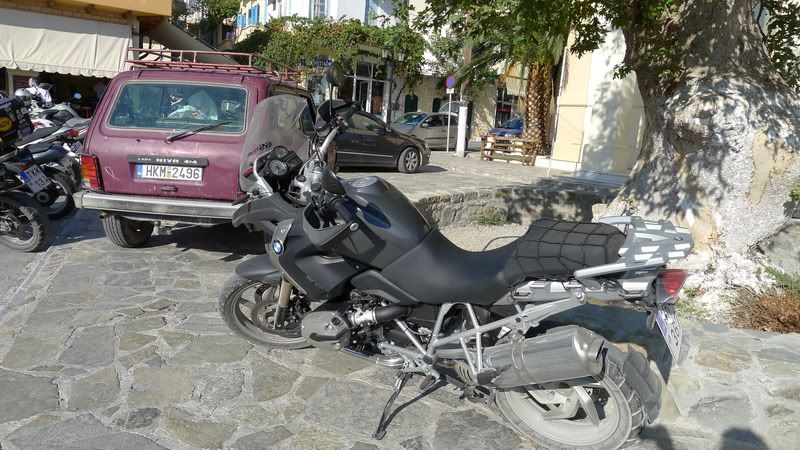Παρκάρουμε στην εκκλησία (συνήθως καθόμαστε στο καφενείο στον πλάτανο αλλά τώρα δεν χωρούσαμε)..