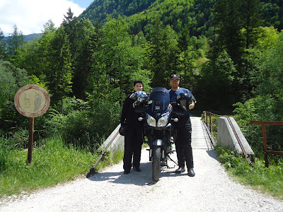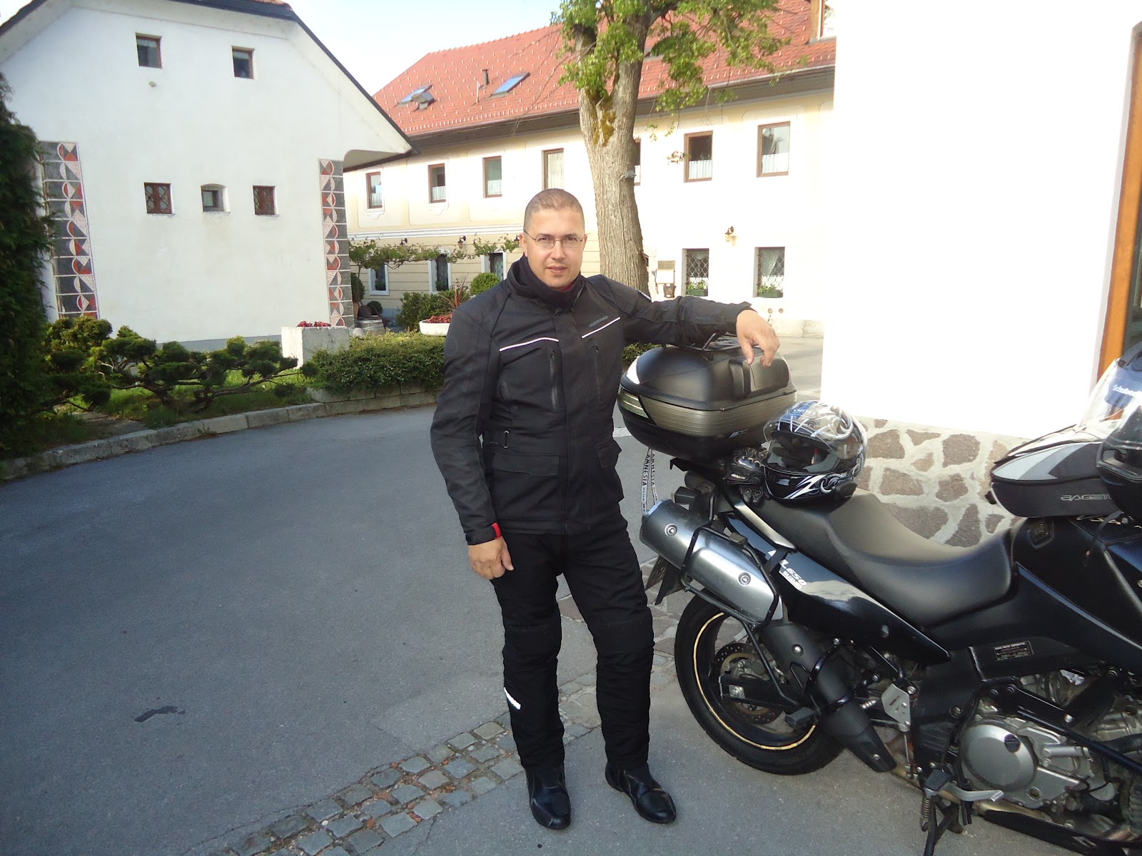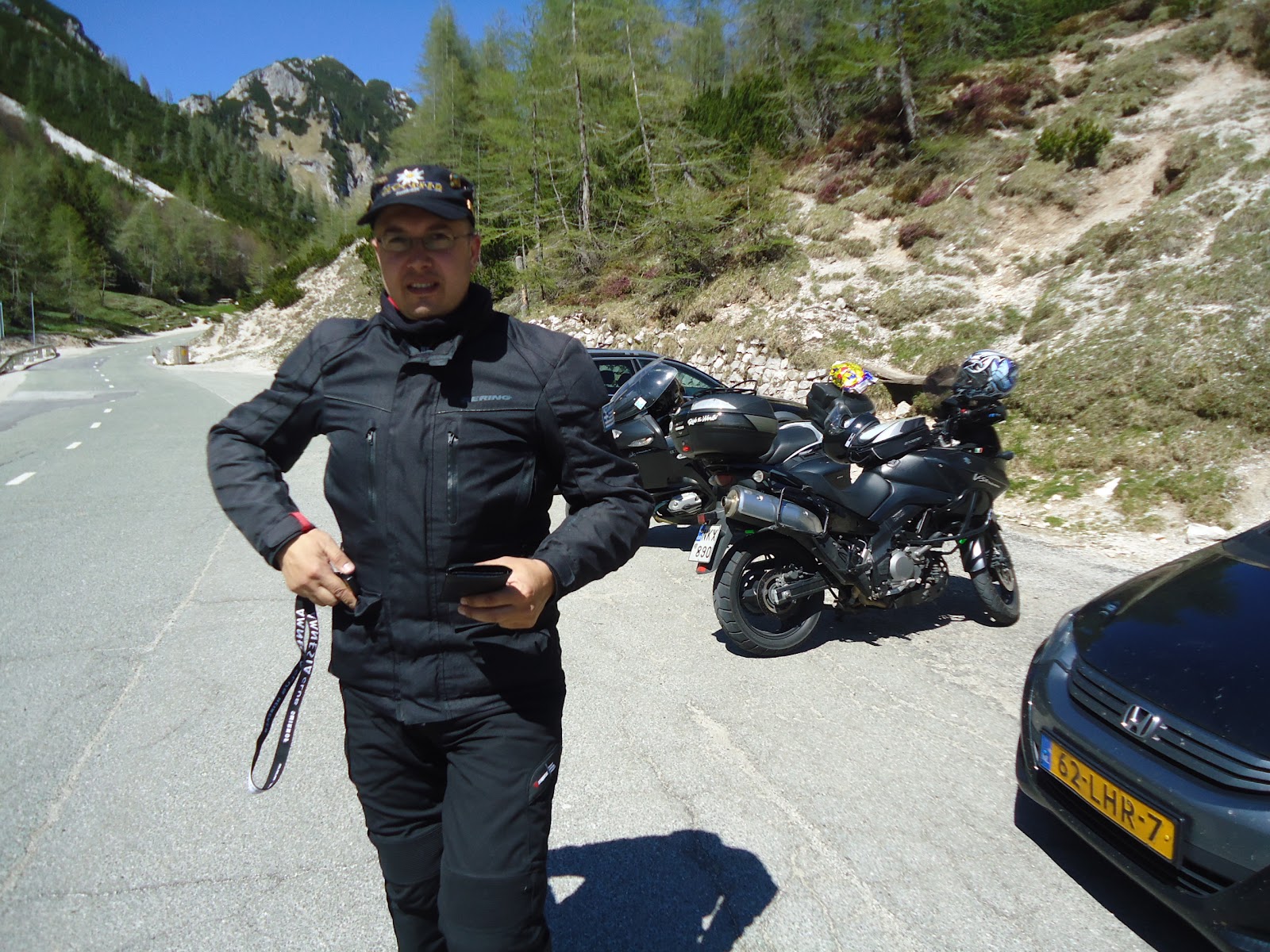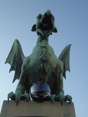 15 May 2012- Day tour to Lake Bled-Vrsic Pass-Kranjska Gora Νωρίς το πρωί ο καιρός είχε καθαρίσει, κι έτσι, αφού απολαύσαμε το πρωινό μας, ετοιμαστήκαμε για το ημερήσιο τουρ που προορισμό είχε την λίμνη Bled και διαδρομή στις Ιουλιανές Άλπεις περνώντας το Vršič Pass και την Kranjska Gora Φτάνοντας στο Bled,ανεβήκαμε να δούμε το Βlejski Grad. που βρίσκεται πάνω στο βράχο, 139μ. πάνω από την λίμνη. H θέα από το κάστρο είναι εκπληκτική. Ο παπαγάλος που ήξερε τα Ελληνικά. Φεύγοντας από το Bled,θέλαμε να πάμε προς το Vršič Pass αλλά κάπου χάσαμε το δρόμο και βρεθήκαμε στην λίμνη Βohinj όπου βρίσκεται στην καρδιά του Εθνικού Πάρκου Triglav. Φοβερή διαδρομή μέσα από καταρράκτες,ρυάκια και καταπράσινα δάση. Μετά από την λίμνη Bohinj,οδηγήσαμε στον 909 για να πάμε προς Tolmin. Οι Ιουλιανές Άλπεις δεν παίζονται και η χώρα έχει τόση "συμπιεσμένη",σε έκταση,ομορφιά,που δε φαντάζεστε. Γενικά οι Σλοβένοι είναι πολύ φιλόξενος λαός και αγαπάνε τους μοτοσυκλετιστές. Μικρή στάση για πορτοκαλαδίτσα στο Most na Soči Αρχίσαμε την ανάβαση για την Kranjska Gora. και το πέρασμα του Vršič Pass. Πηγαίνοντας παράλληλα με τον ποταμό Soča ,όπου τα χρώματα του εναλλάσσονταν από σμαραγδί σε βαθύ πράσινο. Ζήλεψα το τρεχούμενο νερό και κατέβηκα να δροσιστώ λιγάκι,μιας και η μέρα ήταν ζεστή. Φτάνοντας στην κορυφή του Vršič ,στα 1611 μέτρα.Ένα ακόμα αφιλόξενο και έρημο αλπικό τοπίο. Στην παρακάτω φώτο μπορείς να δεις γιατί λένε ότι η τρέλα πάει στα βουνά.Μια κοπέλα ανέβαινε το βουνό με μόνη συντροφιά το σκύλο της. Αρχίσαμε την κατάβαση. Αφού τελειώσαμε το ημερήσιο τουρ,ήρθε η ώρα για μια βολτίτσα στην πανέμορφη Ljoubljana. Στις όμορφες γέφυρες υπάρχει και η Butchers' Bridge, που μπορείς να κλειδώσεις μια ευχή σου ή μια αγάπη σου. Στα σοκάκια της πόλης την προσοχή μας τράβηξε ένα μαγαζί με υπέροχες τσάντες σε διάφορα χρώματα και σχέδια. Καθίσαμε για καφεδάκι στην Preseren Square,την κεντρική πλατεία της Ljoubljana. Τελειώνοντας την βόλτα,περάσαμε από την Dragon Bridge,που και είχαμε παρκάρει νόμιμα σε θέση parking για μοτοσυκλέτες,για να πάρουμε την μηχανή και να πάμε στο ξενοδοχείο.Τα κράνη μας πάντα τα κλειδώναμε γιατί ποτέ δεν ξέρεις τι μπορεί να γίνει. Μερικές game photo. Το ταξίδι μας συνεχίζεται. .