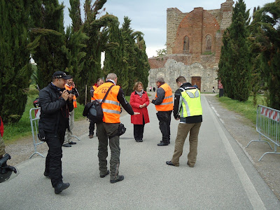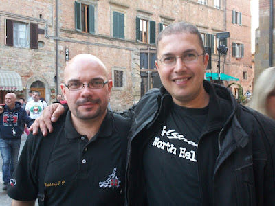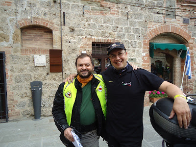 ![]() 26 May 2012 VIII Italian National Meeting V-Strommers-Raduno Προς στιγμή πήρα τον ρόλο του φωτογράφου προκειμένου ο Roberto και Mauro να καλύψουν με videocamera την βράβευση που έκαναν οι διοργανωτές του Raduno στην υπεύθυνη του χώρου. Σήμερα Σάββατο 26 Μαΐου είναι τα γενέθλια μου και τι πιο καλό δώρο για μένα από το να βρίσκομαι ταξίδι με την μηχανή στο εξωτερικό και ειδικά στην Ιταλία. Ετοιμαζόμαστε να ξεκινήσουμε προς το σημείο συνάντησης του Raduno στην Piazza della Liberta. Luca & Daniela, Roberto & Barbara, Mauro . Στάση για ανεφοδιασμό. Άφιξη στην Casole d'Elsa,η προγραμματισμένη ώρα αναχώρησης είναι 09:30. Roberto - Michalis - Mino & Αnna Lisa Η Παρθένα είχε τις κατακτήσεις της. Ο Big Bear,(Riccardo), δεν την άφηνε ήσυχη.Λες να την χάσω από κανένα Ιταλό?Καλά που δεν ήρθε ο Gabriele φέτος......!!!!!!!!!!! Giuliano, (GGG),πολύ καλός φίλος και μέλος της οργάνωσης του Raduno. ![]() . Το μοναδικό Ελληνικό πλήρωμα και φέτος ήμασταν εμείς. Μaurizio,(Bulldog79),-Michalis ![]() Anna Lisa-Parthena-Michalis ![]() Εδώ είμαστε μαζί με τον πάρα πολύ καλό μας φίλο και μεγάλο ταξιδευτή Manfredo. 09:30 ακριβώς τα πληρώματα αναχωρούν για το motogiro. .. ![]() Διανύοντας τα πρώτα μας χιλιόμετρα μέσα από τις καταπράσινες κοιλάδες της Τοσκάνης,φτάνουμε στο εγκαταλελειμμένο Abbazia di San Galgano, το οποίο προσεγγίζουμε μέσω του SS73. Χρονολογούμενο στον 13ο αιώνα, το εντυπωσιακό αβαείο αποτελούσε κάποτε έδρα τάγματος Κιστερκιανών μοναχών, και μάλιστα ενός από τα πιο κραταιά της Τοσκάνης. Η οροφή και το καμπαναριό κατέρρευσαν στα τέλη του 18ου αιώνα, όμως τα γοτθικά απομεινάρια του στέκουν ακόμη σε πολύ καλή κατάσταση στην καρδιά της εύφορης κοιλάδας Val d'Elsa, προδίδοντας το ένδοξο παρελθόν του, πίσω στα χρόνια που η ισχυρή αδελφότητα εκτελούσε χρέη δικαστικού και λογιστικού σώματος στη Σιένα και τη Βολτέρα. Ο μοναδικός ήχος που ακούγεται είναι ο αέρας που σφυρίζει μέσα από τα ανοίγματα του μεγαλόπρεπου οικοδομήματος. ![]() Rotonda di Montesiepi. Roberto & Mauro O καιρός πήγε να μας τα χαλάσει για λίγο αλλά στο τέλος μας έκανε το χατήρι. Επόμενη στάση, η Massa Marittima. για περίπατο και μεσημεριανό παραδοσιακό φαγητό. Αφού τελειώσαμε το μεσημεριανό,με την συνοδεία των μοτοσικλετιστών της αστυνομίας ξεκινήσαμε για το Γεωθερµικό σταθµό ηλεκτροπαραγωγής στο Lardello. Εδώ έγινε η πρώτη βιομηχανική εκμετάλλευση της γεωθερμικής ενέργειας , όπου από τα μέσα του περασμένου αιώνα χρησιμοποιήθηκε ο φυσικός ατμός για να εξατμίσει τα νερά που περιείχαν βορικό οξύ αλλά και να θερμάνει διάφορα κτήρια. Επιστροφή στην Casole d'Elsa. Αφού κάναμε το μπανάκι μας και ξεκουραστηκαμε μαζευτήκαμε στην Piazza della Liberta για την βραδινή γιορτή της διοργάνωσης του VIII Raduno Nazionale. ![]() H διοργανωτές του Raduno σε συνεργασία με την κοινότητα της Casole d'Elsa είχε κανονίσει μερικά event πριν την έναρξη του επίσημου gala του Σαββάτου. Κατά την διάρκεια του gala μας φώναξαν στην εξέδρα για να μας βραβευσουν και φέτος όπως και πέρυσι.Όπως έγραψα και παραπάνω,ήμασταν το μοναδικό Ελληνικό πλήρωμα για δεύτερη φορά που συμμετείχε στο Raduno. ![]() Εκτός την βράβευση για την συμμετοχή,μας έκαναν επίτιμα μέλη των TOSCANACCI. Όλοι οι Ιταλοί μας χειροκροτούσαν και μας έκαναν να νιώθουμε σαν να ημασταν στην χώρα μας. Michalis - Luca -Daniela -Parthena. ![]() Parthena-Roberto-Michalis Mauro-Parthena-Michalis ![]() Η βραδιά τελείωσε με πολύ κέφι και χορό. Το ταξίδι μας συνεχίζεται. |