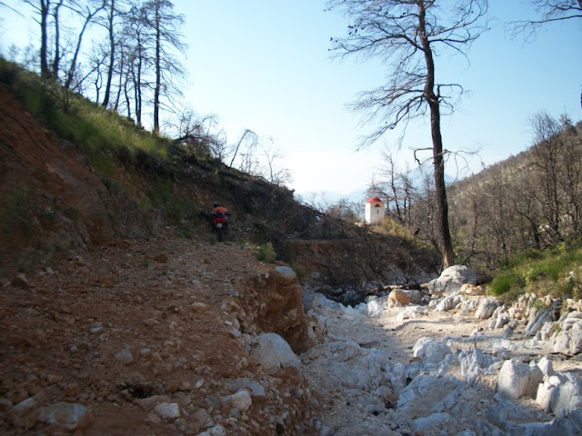 Καλή ανάγνωση .... Αφιερωμένο στα 5 παιδιά που κάηκαν άδικα. Μίστρος- Χιλιαδού Μίστρος- Χιλιαδού 04.07.2010 Ξεκινήσαμε λοιπόν να πάμε για εντουράδα προς Χιλιαδού μεριά …Ένα 2 ημεράκι, ήταν ότι έπρεπε για να ξεφύγουμε ο καθένας από τις δικές του σκοτούρες! Το πρώτο κομμάτι από Αθήνα ήταν άσφαλτος μέχρι την Χαλκίδα. Εκεί βάλαμε βενζίνη και μπήκαμε χώμα με προορισμό τα Πέι, περνάμε απέναντι το ποταμό Λίλαντο, Λεχριές, Ζωοδόχο Πηγή, Ταμάρι, Προφήτη Ηλία, κάνουμε έναν κύκλο στον Όλυμπο, κ πέφτουμε στον Μίστρο από την Τούρλα. Μπρος μας λοιπόν ένα πεσμένο δέντρο, ήταν σαν να σου έλεγε ‘’ψιτ κάντε πίσω, από εδώ δεν είστε καλοδεχούμενοι’’, αλλά βρήκε τα άτομα .. ![]() Περάσαμε το πεσμένο δέντρο, με την σκέψη πως στο Μίστρο θα φτάσουμε σε 10 χλμ, να φανταστείτε πως ούτε σταγόνα νερό δεν είχαμε μαζί. Παρά είχαμε αισιοδοξία μου φαίνετε. ![]() ![]() Βλέπουμε πως ο χωματόδρομος έχει φύγει τελείως και την θέση του έχουν πάρει πέτρες, δέντρα και χαλάσματα. ![]() ![]() ![]() Λόγο της φωτιάς και αμέσως μετά της ασταμάτητης βροχής τα διέλυσε όλα, όταν λέμε όλα, ‘’ΟΛΑ’’. Θα κάνω μια μεγάλη παρένθεση για όσους δεν γνωρίζουν το συμβάν του 2007, που πήρε φωτιά και θα ήθελα να το διαβάσετε ‘’όλοι’’.!!! Διαβάστε τις τελευταίες στιγμές των παλικαριών. Διαβάστε για τη Ζωή τους. Δείτε ποιοί ήταν και θα καταλάβετε πολλά. Νιώστε αυτές τις γραμμές και ποτέ πια δεν θα σας μολύνουν το μυαλό οι διάφοροι εξουσιαστές – σαλτιμπάγκοι. Και συ ρε Γελοίο κράτος κάνε κάτι για το Βασίλη! Δεν θέλει ανδριάντες σαν τον Κεμάλ, όπως και οι υπόλοιποι. Δεν είστε άξιοι να αποδώσετε τιμές σ’ αυτούς τους ανθρώπους. Αυτοί κάηκαν μια φορά και έμειναν Αθάνατοι. Εσείς θα είστε τα αιώνια “καμένα χαρτιά”. Απλά ανοίξτε τα κιτάπια σας που χρηματοδοτούν τις ΜΚΟ και κάντε κάτι για το κάρμα σας. Ήταν μια φορά κι έναν καιρό ένα όμορφο χωριό… Κυριακή 26 Αυγούστου 2007. Μίστρος Ευβοίας. Οι πυρκαγιές έχουν κυκλώσει το νησί, έχουν κυκλώσει την Ελλάδα. Πυροσβέστες κι εθελοντές δίνουν άνιση μάχη. Ανάμεσά τους και πέντε παλικάρια, εθελοντές από το Μίστρο και το Θεολόγο. Πέντε παλικάρια σκοτώθηκαν. Εκείνες τις μέρες, στην Εύβοια, πάνω από 70.000 στρέμματα δάσους και δασικών εκτάσεων έγιναν στάχτη. Περισσότερα από 30 σπίτια κάηκαν ολοσχερώς και 20 υπέστησαν ζημιές. Η παραγωγική δραστηριότητα του νομού υπέστη ένα τεράστιο πλήγμα: 250.000 ελαιόδεντρα, 10.000 άλλα οπωροφόρα, 50 στρέμματα κρασάμπελα, 2.000 γιδοπρόβατα, 1.500 κυψέλες μελισσών, δεκάδες βοοειδή, χοίροι και ζώα εργασίας, 100 σταβλαποθήκες συνολικού εμβαδού 5.000 τετραγωνικών μέτρων. Κάηκαν 150.000 στρέμματα στα οποία βοσκούσαν 40.000 γιδοπρόβατα και βοοειδή. Όλα έγιναν στάχτη… Τις μνήμες εκείνων των ημερών φέρνει σήμερα ένα κείμενο που δημοσιεύει ο «Ρ» από κάποιον που έζησε από κοντά τον εφιάλτη. * * * Ήταν μια φορά κι έναν καιρό ένα όμορφο χωριό στην Εύβοια, στην κεντρική Εύβοια, περιτριγυρισμένο από βουνά. Βουνά που εμπόδιζαν τον «πολιτισμό» να εισβάλει στο χωριό. Τα βουνά εμποδίζουν τους εισβολείς, γίνονται και φυσικά φρούρια, φυσικά σύνορα και απομονώνουν περιοχές. Αυτό το χωριό, απομονωμένο στην ομορφιά του και στον κόσμο του, είχε μόνιμους κατοίκους …παιδιά που σπίτι τους θεωρούσαν τα βουνά που τους περιτριγύριζαν. Παιδιά που θεωρούσαν υποχρέωση να διατηρήσουν τα δάση. Βέβαια, από αυτά ζούσαν, ούτε κουβέντα. Γιατί: Είτε ήταν κτηνοτρόφοι, είτε ήταν βοσκοί ή και τα δυο μαζί. Αύγουστος του 2007. Μίστρος Εύβο