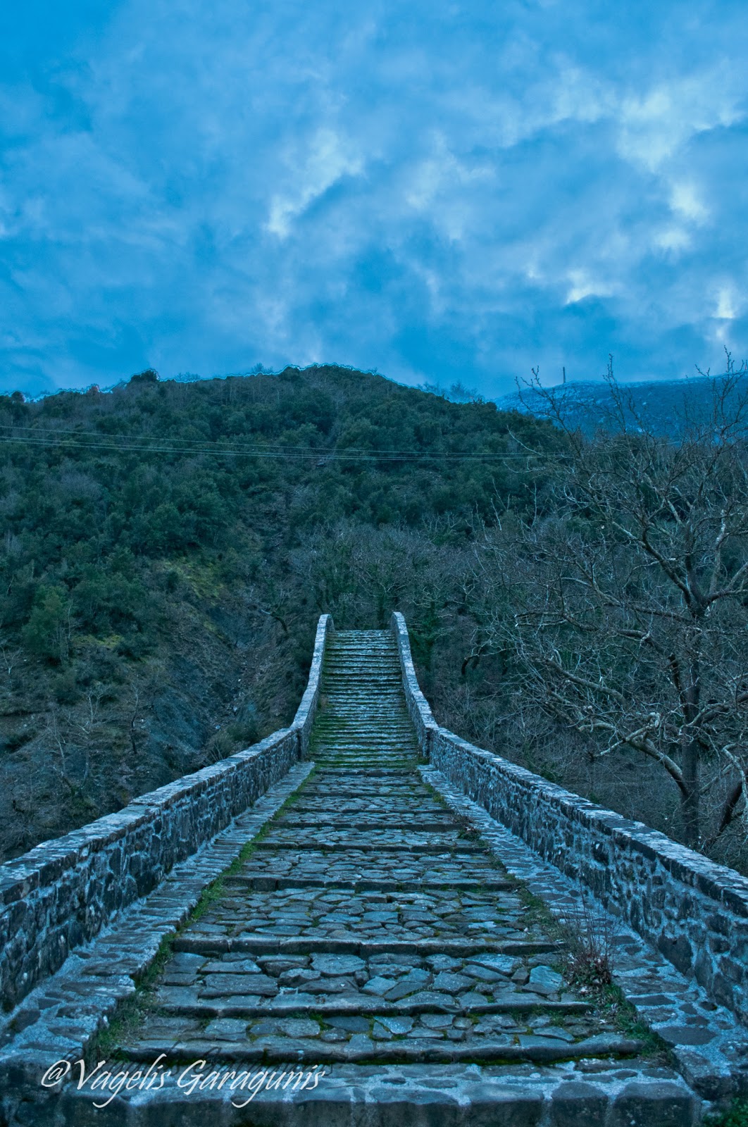 Εντυπωσιασμένοι από το τοπίο αφήνουμε πίσω μας το χωριό με υπόσχεση πως θα το ξαναεπισκευθούμε και ξεκινάμε για να συναντήσουμε πλέον τον Δημήτρη και τους υπόλοιπους φίλους από την Άρτα, στην Πράμαντα. Στην Πράμαντα στάση για βενζίνη μιας και μέχρι εκείνη την στιγμή είχαμε διανύσει περίπου 180-200 χιλιόμετρα. Επικοινωνία με τους φίλους από την Άρτα που μας περιμέναν στο ξενοδοχείο "Ορίζοντες". Συνάντηση και γνωριμία. Δημήτρη (και τα υπόλοιπα παιδιά που δυστυχώς δεν θυμάμαι τα ονόματά τους) χάρηκα πολύ που σας γνώρισα και από κοντά και εύχομαι κάποια στιγμή να κάνουμε το οδοιπορικό που είπαμε. Πάντα όρθιοι με όμορφα ταξίδια σας εύχομαι ! Έχοντας πια αρχίσει να σουσουπώνει ακολουθήσαμε τα παιδιά στην διαδρομή που μας πρότειναν ώστε να βγούμε στην Εγνατία (κοντά στα Γιάννενα). Συνταξιδέψαμε μαζί για κάποια χιλιόμετρα. Πέρασμα από την γέφυρα της Πλάκας όπου και κατεβήκαμε για κάποιες φωτογραφίες. 7ο κομμάτι της διαδρομής Γέφυρα Πλάκας Με όλες τις συνθήκες κατά. Σούρουπο, χωρίς τρίποδα, έλλειψη χρόνου...την επόμενη φορά... Είναι ένα αριστούργημα λαϊκής αρχιτεκτονικής και είναι ένα έργο Τζουμερκιωτών μαστόρων. Χτίστηκε το 1866. Θεωρείτε ως η ωραιότερη γέφυρα των Βαλκανίων και η τρίτη της Ευρώπης. Βρίσκεται στον ποταμό Άραχθο στο δρόμο, τόσο από ΑΡΤΑ, όσο και από ΓΙΑΝΝΕΝΑ, για Άγναντα και Πράμαντα, όπου ο επισκέπτης μπορεί να θαυμάσει αυτό το πανέμορφο γεφύρι που κατά την ιστορία αποτέλεσε σύνορα του Ελληνικού κράτους (1881-1912) και στις όχθες του λειτούργησε τελωνειακός σταθμός. "Η Γέφυρα της Πλάκας έχει συνολικό μήκος 61μ. και υψος 19.70μ. Η μεγάλη καμάρα λεπτή και αέρινη έχει άνοιγμα 39μ. Τη σχεδίασε και έχτισε ο μαστρο-Μπέκας στις αρχές του Ιουλίου του 1866. Εντατικά εργάστηκε το πολυπληθές συνεργείο και το Σεπτέμβριο του ίδιου χρόνου έλαβαν τέλος οι εργασίες. Κατά τη διάρκεια του Β' Παγκόσμιου Πολέμου (1939-1944) και την κατοχή της Ελλάδας από τις δυνάμεις του φασιστικο-ναζιστικού άξονα, η γέφυρα της Πλάκας διευκόλυνε σε μεγάλο βαθμό τους κατοίκους της άγονης και ορεινής περιοχής των Τζουμέρκων στις κινήσεις τους προς τα πεδινά και πλουσιότερα χωριά των κάμπων. Προς τα 'κει οι δυστυχούντες κάτοικοι ταξίδευαν με οποιεσδήποτε καιρικές συνθήκες (χειμώνα - καλοκαίρι) για να βρουν δουλειά και να προμηθευτούν τροφή (καλαμπόκι κατά κύριο λόγο) για να επιβιώσουν. Διευκόλυνση μεγάλη προσέφερε η γέφυρα και στις Αντιστασιακές Οργανώσεις και στα ένοπλα τμήματα του ΕΔΕΣ και του ΕΛΑΣ κατά την διάρκεια των αγώνων για την Εθνική αποκατάσταση της χώρας μας. Εκεί κοντά στη Γέφυρα βρίσκεται και το σπίτι, όπου στις αρχές του 1944 έγινε η συνάντηση των αντιπροσώπων των αντιστασιακών Οργανώσεων (ΕΔΕΣ ΕΛΑΣ - ΕΚΚΑ) και του Άγγλου σύνδεσμου. Στη σύσκεψη συζητήθηκαν διάφορα θέματα και επιδιώχθηκε η Ενότητα και η Συνεργασία των ανταρτών. Στη συνέχεια υπογράφηκε η περιβόητη "Συμφωνία της Πλάκας", που δυστυχώς πολύ σύντομα παραβιάστηκε. Σήμερα το αρχιτεκτονικό μεγαλούργημα, η θαυμαστή και στέρεα Γέφυρα της Πλάκας είναι, κατά κάποιο τρόπο, Αρχαιολογικό μνημείο, γιατί σπάνια πια τη διαβαίνουν άνθρωποι και φορτηγά ζώα. Πηγή κειμένου: pramanta.gr Μια τελευταία (?) στάση για βενζίνη και κάτι ζεστό για να πιούμε στο βενζινάδικο λίγο πριν μπούμε στην Εγνατία Οδό και πάρουμε τον δρόμο της επιστροφής. Σε εκείνο το σημείο χώρισαν οι δρόμοι μας με τον Γιάννη, Γιάννη, Γιάννη και την Άννα που θα πήγαιναν 