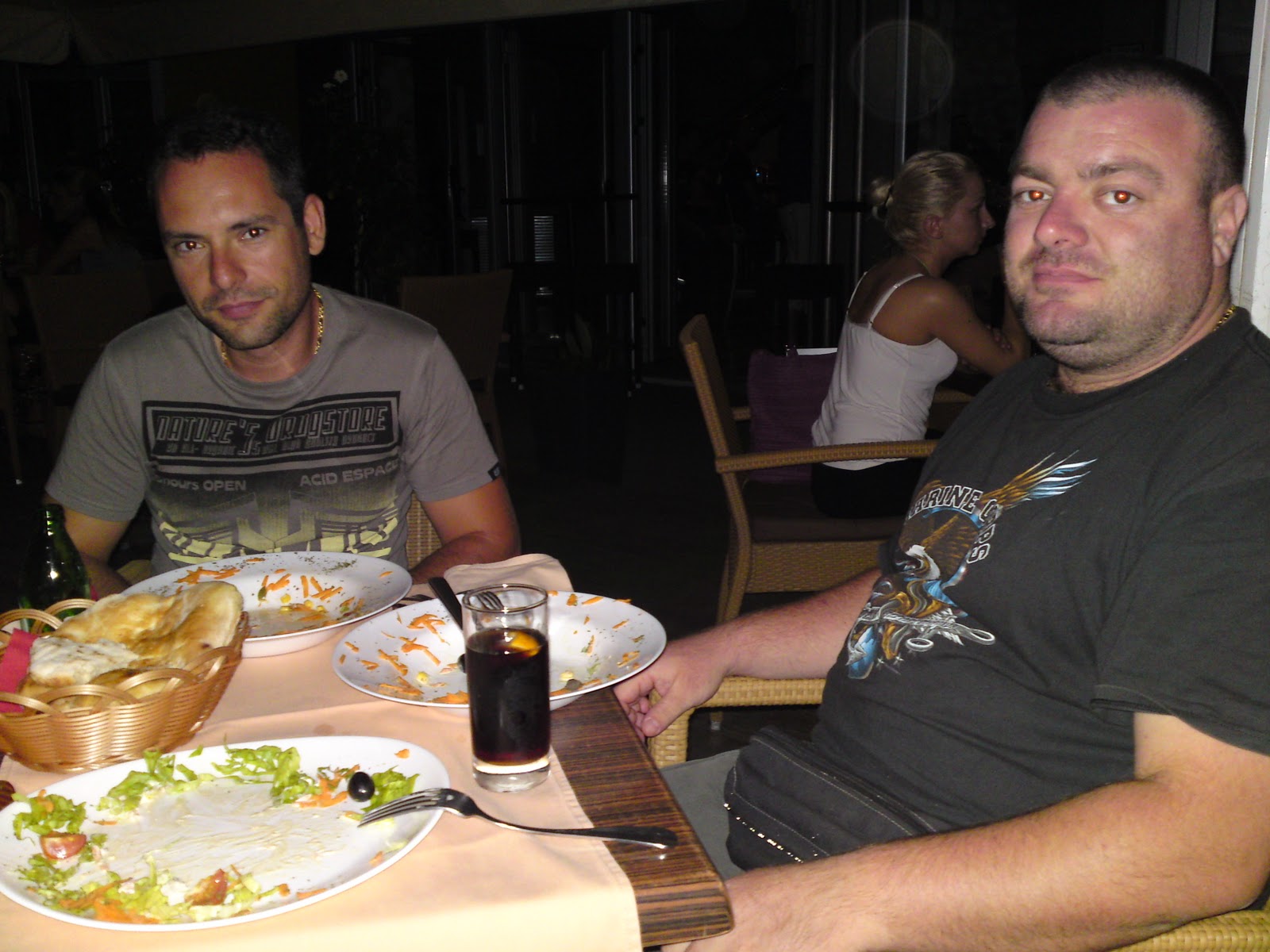 Ήδη είχε νυχτώσει όταν τελειώσαμε την τακτοποίηση των πραγμάτων και ήταν η ώρα του φαγητού. Φτάνουμε σε εστιατόριο επιλογή της Μαρίας (κοπέλα του Παναγιώτη) και του Παναγιώτη.