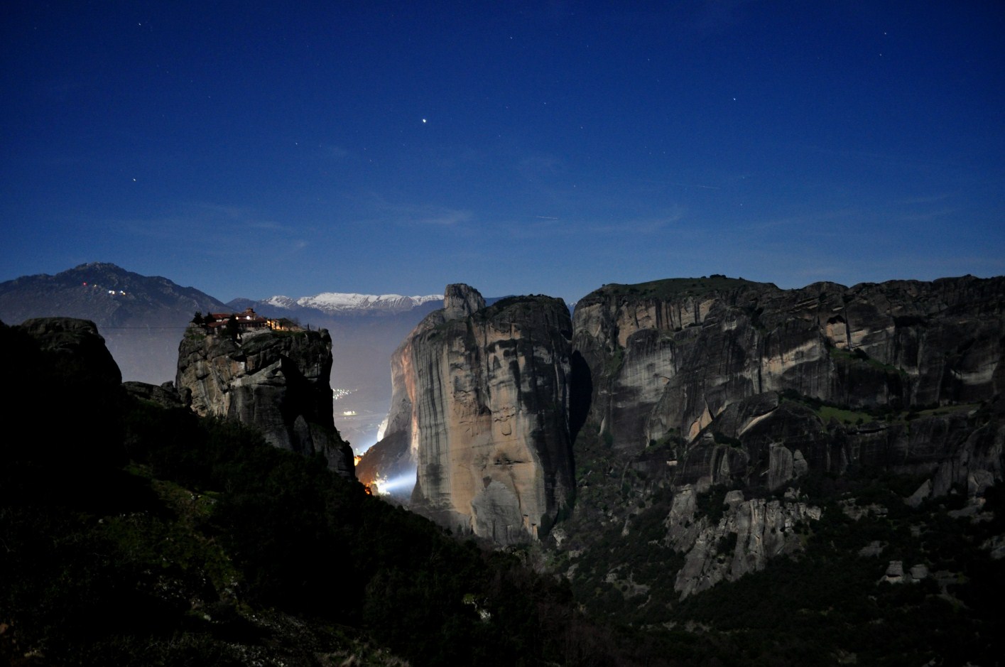 ![]() Τα Μετέωρα είναι ένα σύμπλεγμα από τεράστιους σκοτεινόχρωμους βράχους που υψώνονται έξω από την Καλαμπάκα, κοντά στα πρώτα υψώματα της Πίνδου και των Χασίων. Τα μοναστήρια των Μετεώρων, που είναι χτισμένα στις κορυφές κάποιων από τους βράχους είναι σήμερα το δεύτερο πλέον σημαντικό μοναστικό συγκρότημα στην Ελλάδα, ύστερα από το Άγιο Όρος. Από τα τριάντα που υπήρξαν ιστορικά, σήμερα λειτουργούν μόνο έξι και τα οποία από το 1988 περιλαμβάνονται στον κατάλογο μνημείων παγκόσμιας κληρονομιάς της UNESCO. ![]() Η δημιουργία του γεωλογικού τοπίου, αν και έχει κατά καιρούς απασχολήσει πολλούς Έλληνες και ξένους γεωλόγους δεν έχει ακόμη ξεκάθαρα ερμηνευθεί. Είναι ενδιαφέρον το ότι ούτε η Ελληνική Μυθολογία ούτε οι αρχαίοι Έλληνες αλλά και ούτε ξένος ιστορικός έχει αναφερθεί στο χώρο αυτό. ![]() Σύμφωνα με την θεωρία του Γερμανού γεωλόγου Φίλιπσον, που επισκέφτηκε την Ελλάδα στα τέλη του 19ου αιώνα, η δημιουργία αυτών των τεράστιων ογκολίθων οφείλεται σ΄ ένα δελτοειδή κώνο από ποταμίσιους ογκόλιθους και ασβεστολιθικά πετρώματα που για εκατομμύρια χρόνια χύνονταν σε θαλάσσια έκταση που κάλυπτε τότε τη Θεσσαλία ![]() Οι γεωλογικές μεταβολές των αιώνων ανύψωσαν και αποσφήνωσαν το τμήμα αυτό όταν αποτραβήχτηκαν τα νερά στο Αιγαίο. Έτσι αργότερα κατά την τριτογενή περίοδο που διαμορφώθηκαν οι αλπικές πτυχώσεις της οροσειράς της Πίνδου, αποκόπηκε αυτός ο κώνος από τη συμπαγή μορφή του δημιουργώντας επιμέρους μικρότερους, αυτοί που υφίστανται σήμερα, και ανάμεσά τους τη κοιλάδα του Πηνειού ποταμού. ![]() Το άγριο και απροσπέλαστο τοπίο αποτέλεσε πρόσφορο χώρο για τους χριστιανούς ασκητές που εγκαταστάθηκαν στην περιοχή σε χρονολογία που δεν είναι ακριβώς γνωστη. Κατά διάφορες γνώμες βυζαντινολόγων υποστηρίζεται ότι ξεκίνησε πριν από το 11ο αιώνα. Άλλες ιστορικές όμως πληροφορίες αναφέρουν ως πρώτο ασκητή οικιστή κάποιον Βαρνάβα που το 950-9701020) από κάποιον Κρητικό μοναχό Ανδρόνικο και το 1160 ιδρύεται η Σκήτη Σταγών ή Δούπιανη. Μετά από 200 χρόνια, ο ασκητής Βαρλαάμ ιδρύει το Μοναστήρι των Τριών Ιεραρχών και των Αγίων Πάντων και αργότερα άγνωστοι ιερωμένοι δημιούργησαν τα Μοναστήρια Αγίας Τριάδος, του Αγίου Στεφάνου, της Υπαπαντής, του Ρουσάνου ή Αρσάνου, του Αγίου Γεωργίου του Μανδηλά, του Αγίου Νικολάου του Αναπαυσά, της Παναγίας της Μήκανης, των Αγίων Θεοδώρων, του Αγίου Νικολάου του Μπάντοβα, των Αγίων Αποστόλων, του Αγίου Γρηγορίου, του Αγίου Αντωνίου, του Παντοκράτορα, της Αγίας Μονής, του Προδρόμου, της Μονής Υψηλωτέρας, ή Καλλιγράφων, του Μοδέστου, της Αλύσεως, του Αποστόλου Πέτρου, του Αγίου Δημητρίου, του Καλλιστράτου, του Ταξιαρχών και του Ιωάννου του Μπουνήλα. ![]() Το όνομα Μετέωρα αποδίδεται στον κτήτορα της μονής Μεγάλου Μετεώρου τον Άγιο Αθανάσιο τον Μετεωρίτη, ο οποίος ονόμασε «Μετέωρο» τον Πλατύ Λίθο στον οποίο ανέβηκε πρώτη φορά το 1344. Γενικά η μοναστική ζωή στα Μετέωρα σημείωσε ύφεση στα χρόνια της παρακμής και της πτώσης της βυζαντινής αυτοκρατορίας και της συνακόλουθης οθωμανικής κατάκτησης της Θεσσαλίας το 1393. Ωστόσο από τα τέλη του 15ου αιώνα και κυρίως τον 16ο αιώνα τα Μετέωρα γνωρίζουν τη μεγαλύτερή τους ακμή καθώς ιδρύονται νέες μονές, καθολικά και μοναστηριακά κτίσματα, τα οποία κοσμούνται με απαράμιλλης τέχνης αγιογραφίες. ![]() Με την πάροδο του χρόνου η μοναστηριακή αυτή πολιτεία άρχισε να ενισχύεται με μοναχούς για να φθάσε