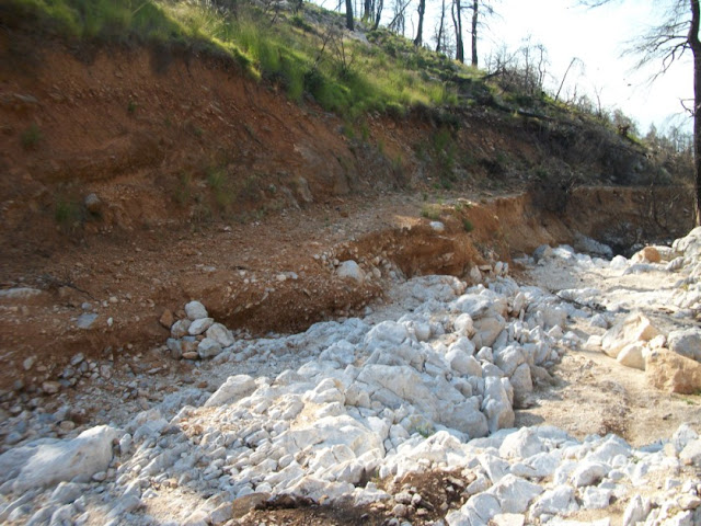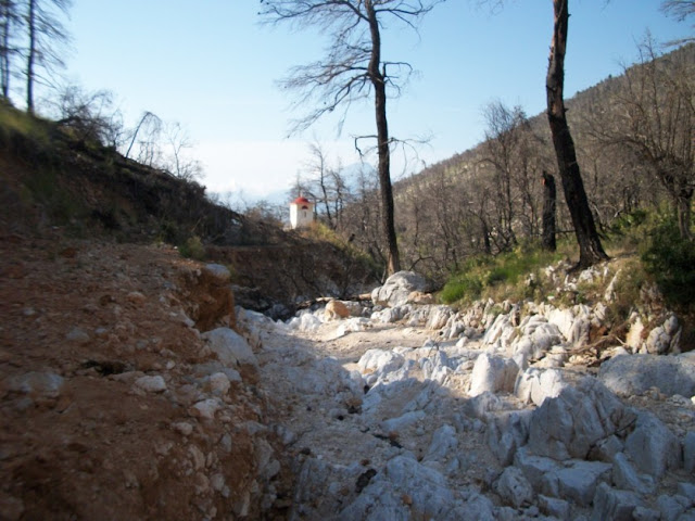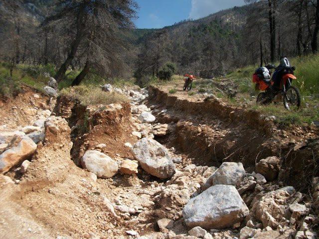 Καλή ανάγνωση .... Αφιερωμένο στα 5 παιδιά που κάηκαν άδικα. Μίστρος- Χιλιαδού Μίστρος- Χιλιαδού 04.07.2010 Ξεκινήσαμε λοιπόν να πάμε για εντουράδα προς Χιλιαδού μεριά …Ένα 2 ημεράκι, ήταν ότι έπρεπε για να ξεφύγουμε ο καθένας από τις δικές του σκοτούρες! Το πρώτο κομμάτι από Αθήνα ήταν άσφαλτος μέχρι την Χαλκίδα. Εκεί βάλαμε βενζίνη και μπήκαμε χώμα με προορισμό τα Πέι, περνάμε απέναντι το ποταμό Λίλαντο, Λεχριές, Ζωοδόχο Πηγή, Ταμάρι, Προφήτη Ηλία, κάνουμε έναν κύκλο στον Όλυμπο, κ πέφτουμε στον Μίστρο από την Τούρλα. Μπρος μας λοιπόν ένα πεσμένο δέντρο, ήταν σαν να σου έλεγε ‘’ψιτ κάντε πίσω, από εδώ δεν είστε καλοδεχούμενοι’’, αλλά βρήκε τα άτομα .. ![]() Περάσαμε το πεσμένο δέντρο, με την σκέψη πως στο Μίστρο θα φτάσουμε σε 10 χλμ, να φανταστείτε πως ούτε σταγόνα νερό δεν είχαμε μαζί. Παρά είχαμε αισιοδοξία μου φαίνετε. ![]() ![]() Βλέπουμε πως ο χωματόδρομος έχει φύγει τελείως και την θέση του έχουν πάρει πέτρες, δέντρα και χαλάσματα. ![]() ![]() ![]() Λόγο της φωτιάς και αμέσως μετά της ασταμάτητης βροχής τα διέλυσε όλα, όταν λέμε όλα, ‘’ΟΛΑ’’. Θα κάνω μια μεγάλη παρένθεση για όσους δεν γνωρίζουν το συμβάν του 2007, που πήρε φωτιά και θα ήθελα να το διαβάσετε ‘’όλοι’’.!!! Διαβάστε τις τελευταίες στιγμές των παλικαριών. Διαβάστε για τη Ζωή τους. Δείτε ποιοί ήταν και θα καταλάβετε πολλά. Νιώστε αυτές τις γραμμές και ποτέ πια δεν θα σας μολύνουν το μυαλό οι διάφοροι εξουσιαστές – σαλτιμπάγκοι. Και συ ρε Γελοίο κράτος κάνε κάτι για το Βασίλη! Δεν θέλει ανδριάντες σαν τον Κεμάλ, όπως και οι υπόλοιποι. Δεν είστε άξιοι να αποδώσετε τιμές σ’ αυτούς τους ανθρώπους. Αυτοί κάηκαν μια φορά και έμειναν Αθάνατοι. Εσείς θα είστε τα αιώνια “καμένα χαρτιά”. Απλά ανοίξτε τα κιτάπια σας που χρηματοδοτούν τις ΜΚΟ και κάντε κάτι για το κάρμα σας. Ήταν μια φορά κι έναν καιρό ένα όμορφο χωριό… Κυριακή 26 Αυγούστου 2007. Μίστρος Ευβοίας. Οι πυρκαγιές έχουν κυκλώσει το νησί, έχουν κυκλώσει την Ελλάδα. Πυροσβέστες κι εθελοντές δίνουν άνιση μάχη. Ανάμεσά τους και πέντε παλικάρια, εθελοντές από το Μίστρο και το Θεολόγο. Πέντε παλικάρια σκοτώθηκαν. Εκείνες τις μέρες, στην Εύβοια, πάνω από 70.000 στρέμματα δάσους και δασικών εκτάσεων έγιναν στάχτη. Περισσότερα από 30 σπίτια κάηκαν ολοσχερώς και 20 υπέστησαν ζημιές. Η παραγωγική δραστηριότητα του νομού υπέστη ένα τεράστιο πλήγμα: 250.000 ελαιόδεντρα, 10.000 άλλα οπωροφόρα, 50 στρέμματα κρασάμπελα, 2.000 γιδοπρόβατα, 1.500 κυψέλες μελισσών, δεκάδες βοοειδή, χοίροι και ζώα εργασίας, 100 σταβλαποθήκες συνολικού εμβαδού 5.000 τετραγωνικών μέτρων. Κάηκαν 150.000 στρέμματα στα οποία βοσκούσαν 40.000 γιδοπρόβατα και βοοειδή. Όλα έγιναν στάχτη… Τις μνήμες εκείνων των ημερών φέρνει σήμερα ένα κείμενο που δημοσιεύει ο «Ρ» από κάποιον που έζησε από κοντά τον εφιάλτη. * * * Ήταν μια φορά κι έναν καιρό ένα όμορφο χωριό στην Εύβοια, στην κεντρική Εύβοια, περιτριγυρισμένο από βουνά. Βουνά που εμπόδιζαν τον «πολιτισμό» να εισβάλει στο χωριό. Τα βουνά εμποδίζουν τους εισβολείς, γίνονται και φυσικά φρούρια, φυσικά σύνορα και απομονώνουν περιοχές. Αυτό το χωριό, απομονωμένο στην ομορφιά του και στον κόσμο του, είχε μόνιμους κατοίκους …παιδιά που σπίτι τους θεωρούσαν τα βουνά που τους περιτριγύριζαν. Παιδιά που θεωρούσαν υποχρέωση να διατηρήσουν τα δάση. Βέβαια, από αυτά ζούσαν, ούτε κουβέντα. Γιατί: Είτε ήταν κτηνοτρόφοι, είτε ήταν βοσκοί ή και τα δυο μαζί. Αύγουστος του 2007. Μίστρος Εύβο