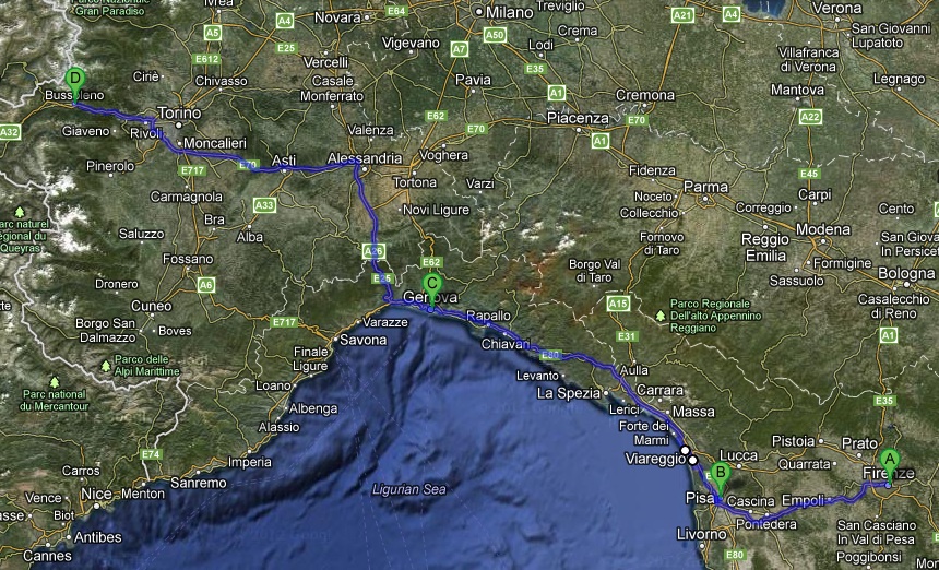Φλωρεντία - Bussoleno (έξω από το Τορίνο) 450 χλμ περίπου ![]() Τη μηχανή την πήραμε τελικά πριν τις 11 το πρωί. Η τρόμπα που έβγαλε από μέσα ο μάστορας ήταν πολύ αμφίβολο αν ήταν γνήσια, όπως είχε πει στον Σκίουρο ο μάστορης στην Αθήνα... Τελικά δε ξέρω τι έγινε με αυτό το θέμα, δε τον ρώτησα ποτέ τώρα που το σκέφτομαι. Ντυθήκαμε και καβαλήσαμε απίστευτα γρήγορα μόλις πήραμε την μηχανή. Δε κρατιόμασταν! Έπρεπε να φάμε πολύ χιλιόμετρο σήμερα και να φτάσουμε τουλάχιστον στους πρόποδες των Άλπεων! Εγώ στην αρχή πήγαινα σα χαζός, ο Σκίουρος από πίσω φώναζε και κάπως έτσι κύλαγε ο χρόνος μέχρι τον πύργο της Πίζας. Η ζέστη όμως ήταν αφόρητη. Φτάσαμε στον πύργο και κάναμε μία μικρή στάση για καφέ ![]() "όντως γέρνει" ![]() ![]() ![]() "Ο Σκίουρος με έναν από τους πολλούς καφέδες που έπινε καθημερινά" Ξανά καβάλημα και ξεκινήσαμε να ανηφορίζουμε από την παραλιακή για καμιά 10αριά χιλιόμετρα μέχρι που δεν αντέχαμε άλλο. Είχε φανάρι κάθε 300 μέτρα. Και σε έπιαναν όλα. Οι οδηγοί βέβαια σταματούσαν και χωρίς να έχει φανάρι, φτάνει ένας πεζός να πάταγε στο δρόμο. Επίσης κανείς δε ξεπέρναγε το όριο ούτε στο ελάχιστο. Προσωπικά πιστεύω θα μου έπαιρνε καιρό να συνηθίσω σε τόσο πολιτισμένο τρόπο οδήγησης. Η παραλία που βλέπαμε στα αριστερά μας ήταν μία απέραντη αμμουδιά με ξαπλωστρομπρέλες μέχρι εκεί που χάνεται το μάτι σου, αλλά όλα ήτανε δωρεάν... Η θερμοκρασία όμως ήταν κοντά στους 35+ με ντάλα ήλιο οπότε είπαμε να πάμε από Autostrada (η οποία ουσιαστικά πάει παράλληλα με την παραλιακή). Και θα περιγράψω όσο πιο κόσμια μπορώ το πώς ήταν η Autostrada Α12. Κ-Α-Β-Λ-Α. Πραγματικά μοναδικός δρόμος. Τα μισά από τα χιλιόμετρα που κάναμε στον Α12 ήταν σε υπερυψωμένες γέφυρες που μπαίνεις σε τούνελ στο βουνό, μετά βγαίνοντας από το τούνελ έπεφτες πάλι σε υπερυψωμένη γέφυρα και πάει λέγοντας. Και όλα αυτά μέσα στο πράσινο και κοιτώντας την θάλασσα από πολύ ψηλά στα αριστερά σου. Όσο για την ποιότητα του οδοστρώματος και τις μεγάλες παρατεταμένες στροφές δε χρειάζεται να πω τίποτα... Αυτό που χρειάζεται να πω σίγουρα όμως είναι ότι τα 31 ευρώ διόδια που πληρώσαμε σύνολο τσούξανε για τα καλά, αν και μετά από αυτή την απόλαυση δε γκρινιάξαμε καθόλου. Περνάγαμε τόσο ωραία στο δρόμο που μέχρι το βράδυ που φτάσαμε στους πρόποδες των Άλπεων κοντά στο Βussoleno και ξεκινήσαμε να ψάχνουμε κάμπινγκ παρατηρήσαμε ότι είχαμε ξεχάσει να φάμε. Είχα να δω τον Σκίουρο τόσο χαρούμενο από την τελευταία φορά που είχαμε τρέξει αγώνα μαζί! Και η Τόνια δε καταλάβαινε από κούραση, κλασσική γυναίκα :-P ![]() "Στάση για τσιγάρο σε πάρκινγκ της Autostrada" ![]() "Πρώτη φορά είδαμε βενζινάδικο με ειδική λωρίδα για μηχανές..." "Επιτέλους ξεκινήσαμε να διακρίνουμε βουνό στο βάθος" Αφού ρωτήσαμε σε ένα τοπικό μαγαζί βρήκαμε ένα κάμπινγκ (με 7 ευρώ έκαστος νομίζω) στο οποίο ο μικρότερος σε ηλικία διαμένοντας ήταν 70 χρονών (!!) στήσαμε τις σκηνούλες μας και είπαμε να πάμε για κανα μπάνιο. Όλοι γύρω μας μιλούσαν μία περίεργη Γερμανική διάλεκτο, ελάχιστοι ξέραν Ιταλικά, όπως και στα περισσότερα μέρη της Βόρειας Ιταλίας που προσαρτήστικαν μετά τους πολέμους σε αυτήν. Κατά τις 9 ενώ η ατμόσφαιρα είχε λίγο φως ακόμα όλοι είχαν πάει για ύπνο...τρίτη ηλικία λέμε! Πήγαμε και σε ένα μαγαζί γύρω στις 9:30 για πίτσα και πάλι καλά που το προλάβαμε γιατί έκλεινε, μας είπε ότι ήμασταν τυχεροί γιατί δεν είχε κλείσει τον φούρνο ακόμα... Από την πολυκοσμία της πόλης είχαμε περάσει ξαφ