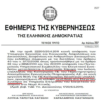 βγαίνει το ΦΕΚ Γ' 571/17-8-2011, που ακυρώνει τη μετάταξη, της μετάταξης, ω μετάταξη...